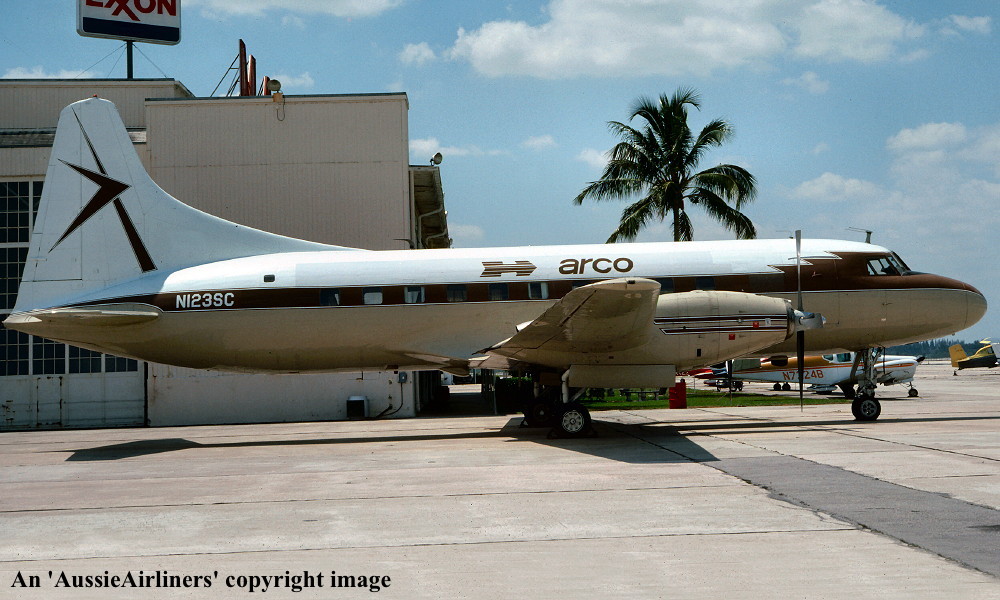 N123SC. Arco - in the basic Aviation Office Of America livery at Miami Opa Locka Airport, May 1976. (R. N. Smith Collection Copyright Image 1029-139.) |