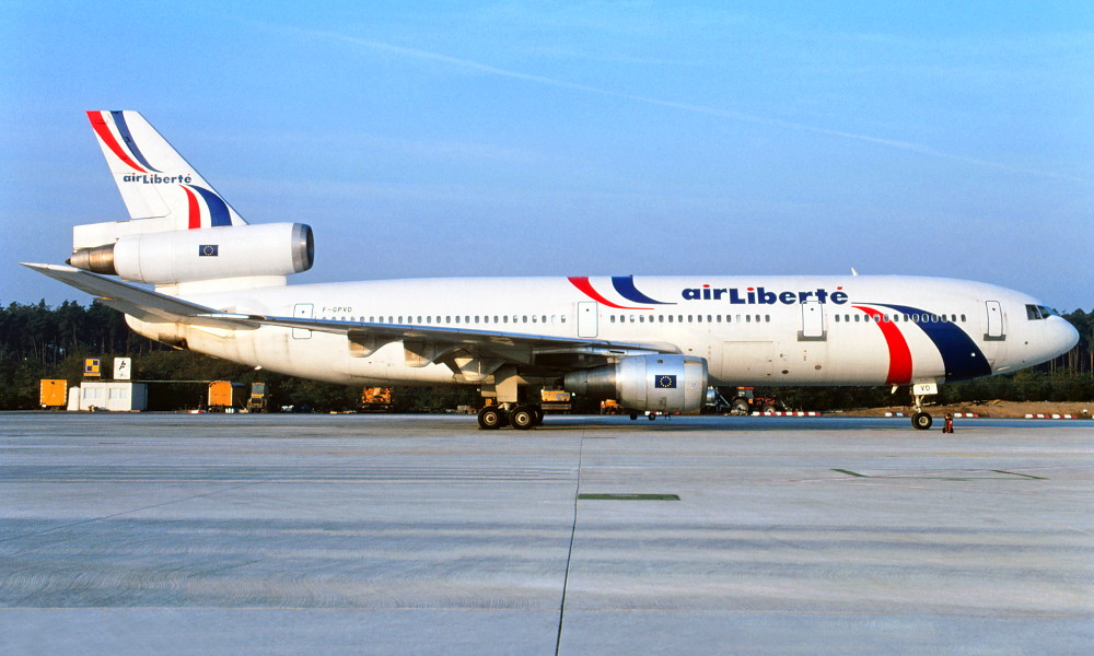 F-GPVD. Air Liberte - in the standard livery at an unknown airport, October 1994.