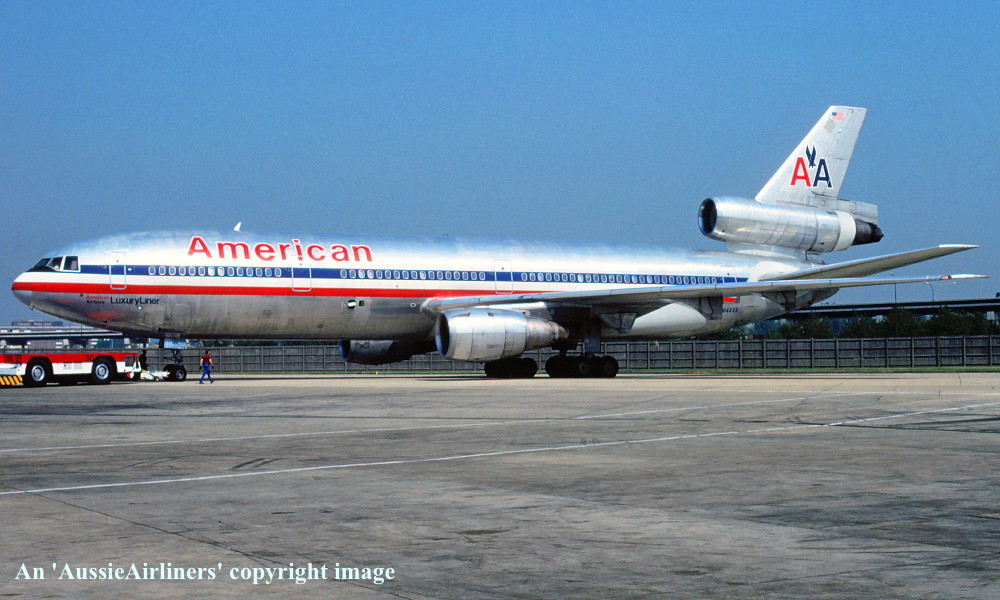 N144AA. American - in the standard livery at London Gatwick Airport, July 1986.