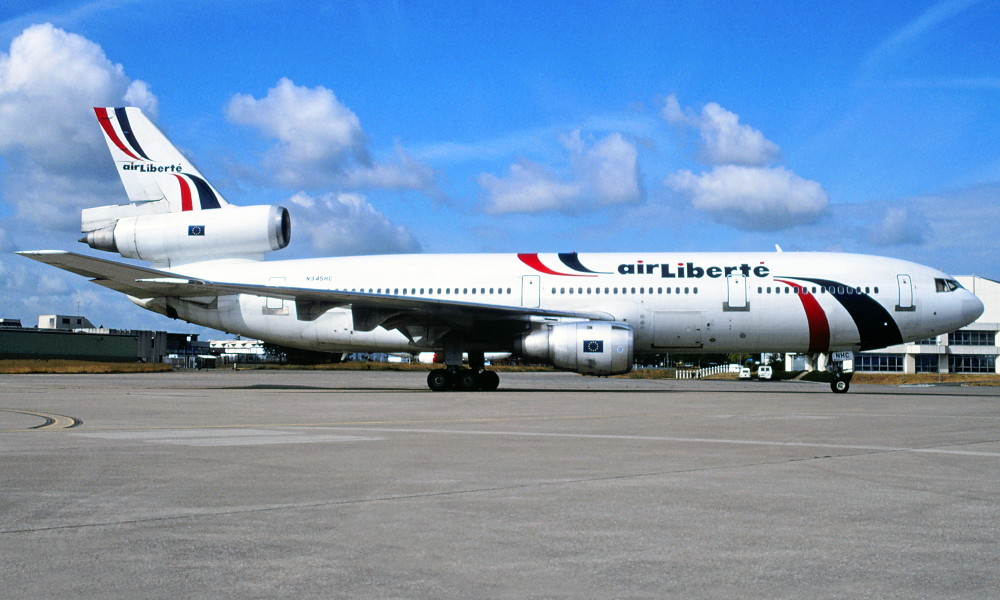 N345HC. Air Liberte - in the standard livery at an unknown airport, September 1996.