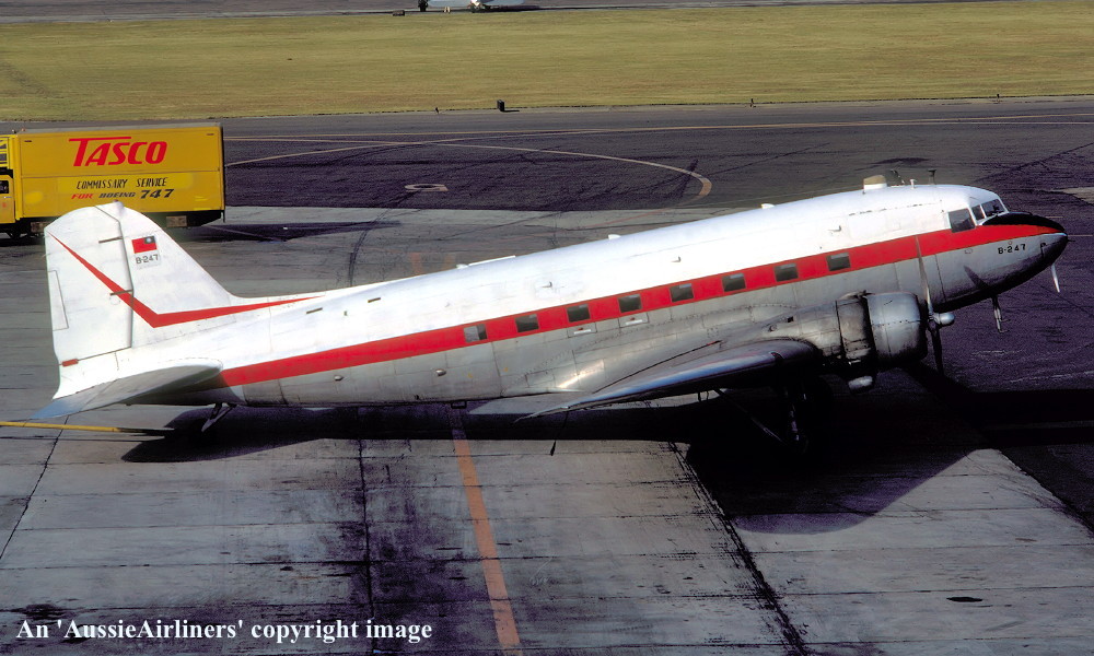 B-247. F.E.A.T. - in the standard livery at Taipei Airport, November 1976. (R. N. Smith Collection Copyright Image 0251-383.) |