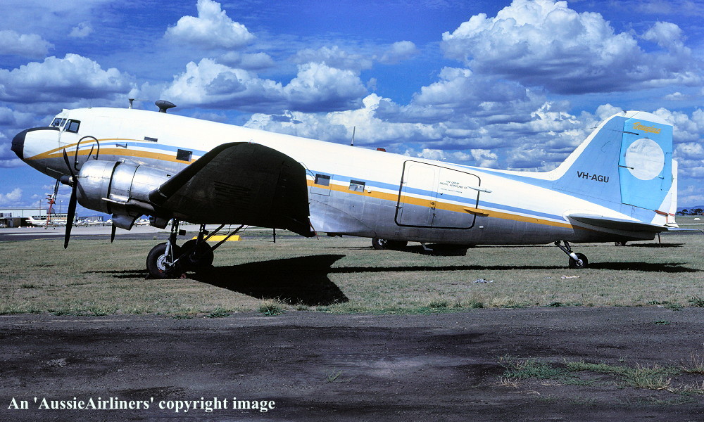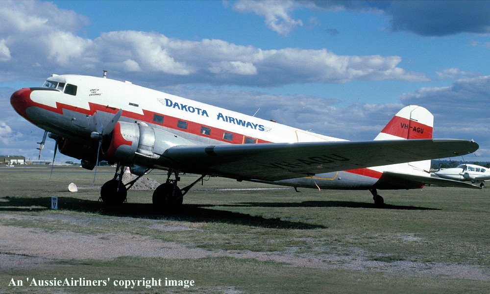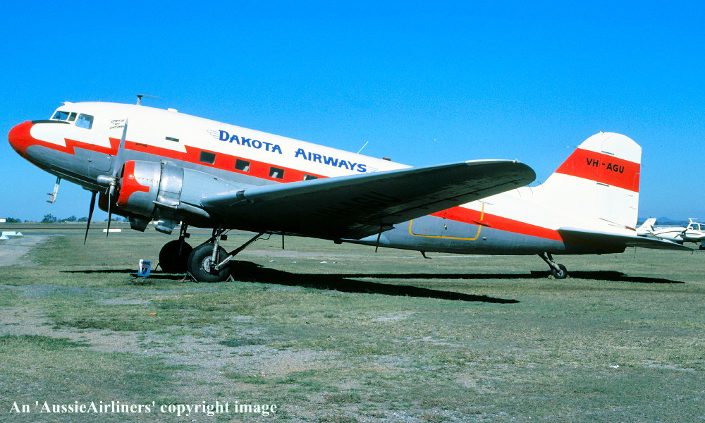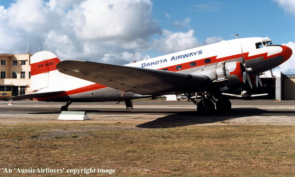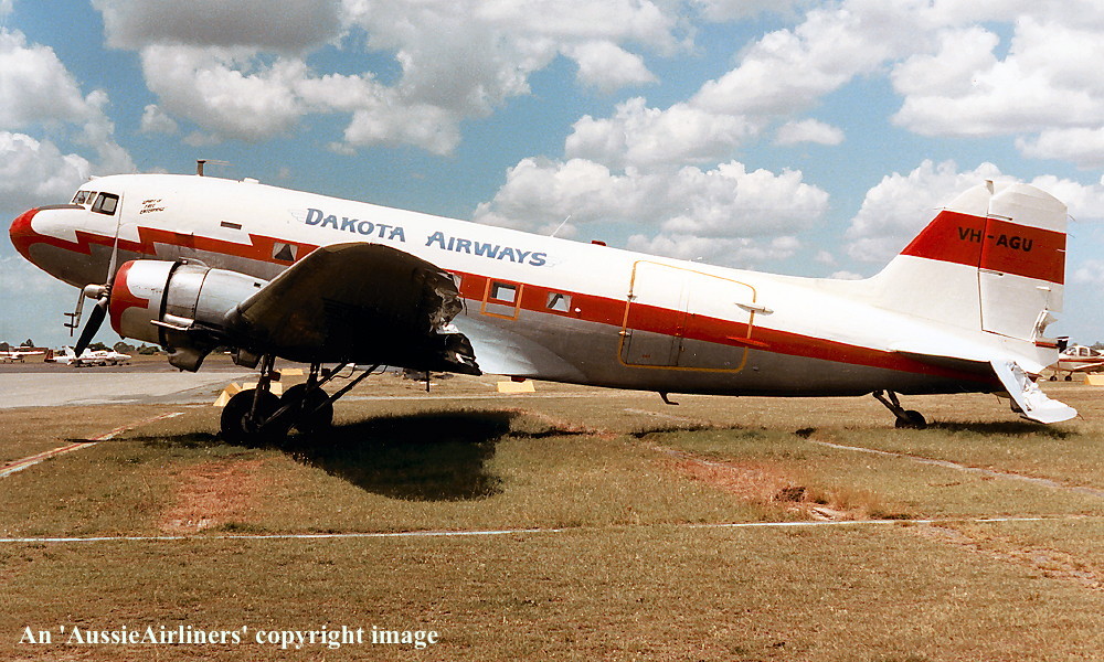 VH-AGU. Dakota Airways - in the basic livery at Brisbane Archerfield Airport, May 1992. (R. N. Smith Collection Copyright Image 0250-640.) |