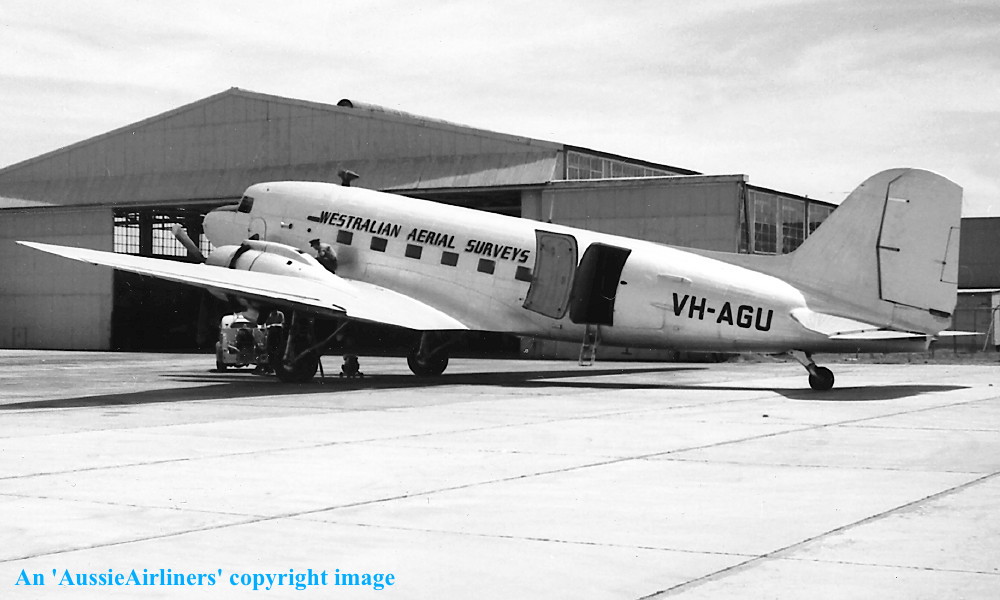 VH-AGU. Westralian Aerial Surveys - in the all-metal livery at Sydney Kingsford Smith Airport, date unknown. (E. D. Daw Collection Copyright Image 0250-745.) |