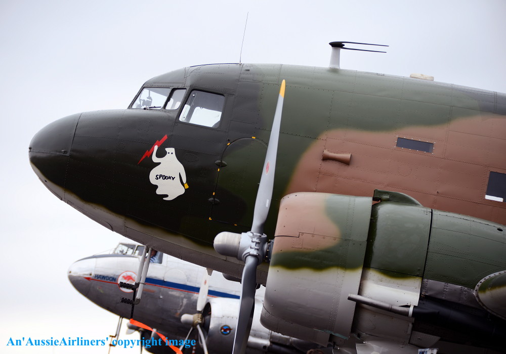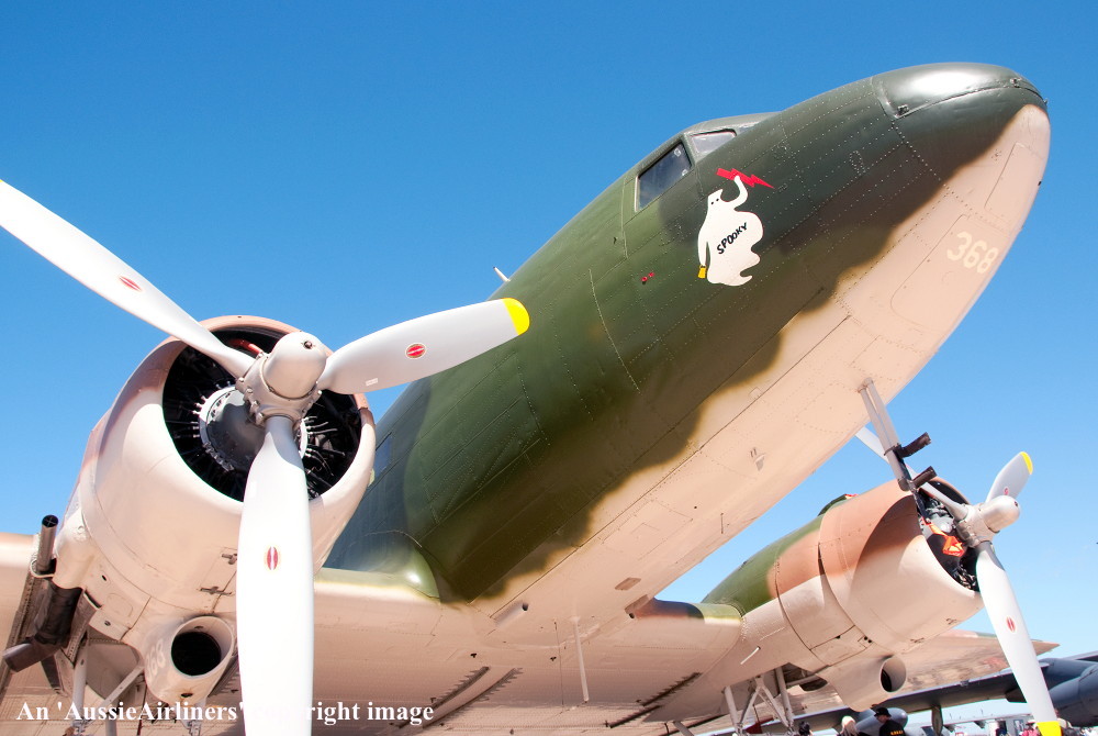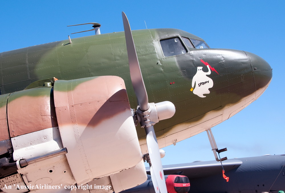 VH-AGU. Jeff Trappett - 'Spooky' in the 'USAF Vietnam' camouflage livery as 'AF43-368' at Melbourne Avalon Airport, March 02, 2013. (G. Canciani Copyright Image 0251-663.) |