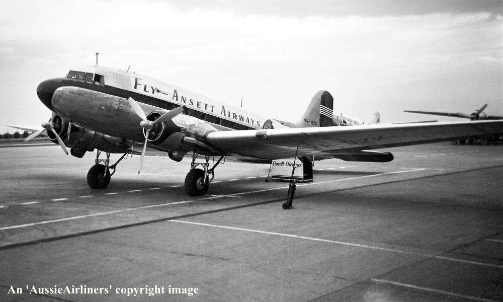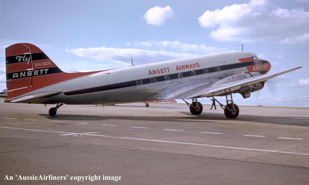 VH-BZK. Ansett Airways - in the 'Braniff' style livery at Melbourne Essendon Airport, November 1956. (B. Colledge Copyright Image 0250-193.) |