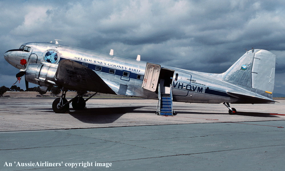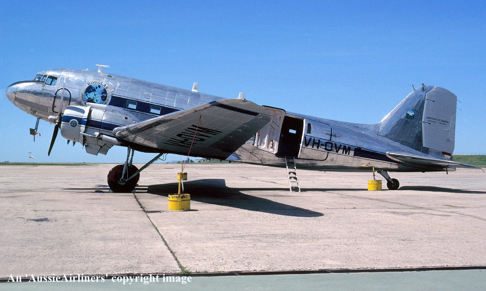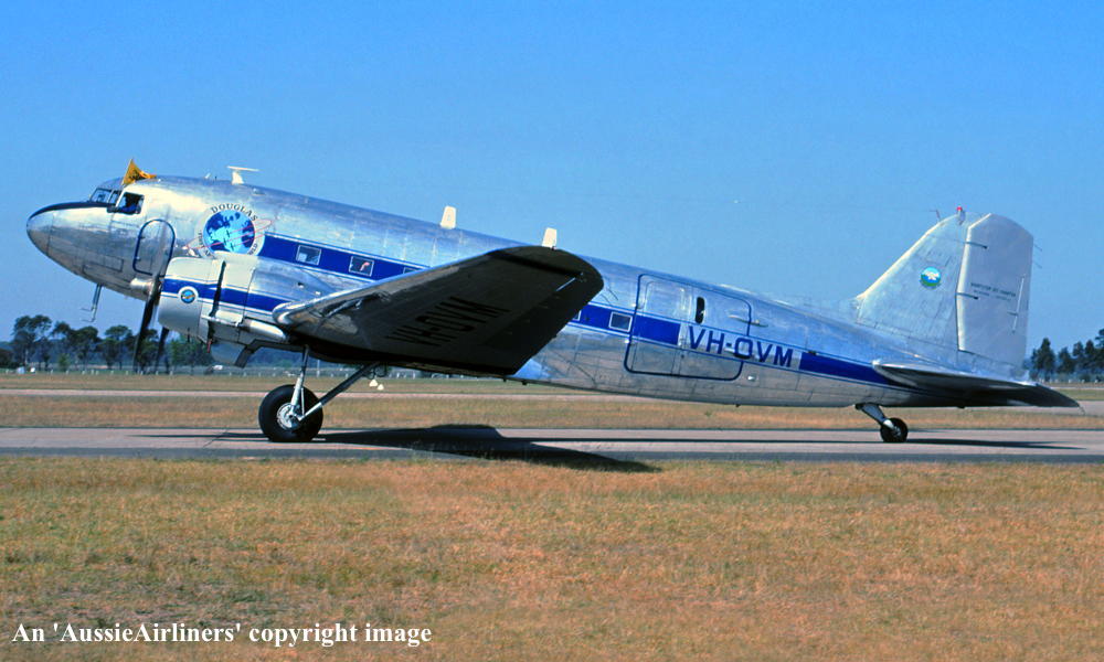 Construction was completed at the Douglas Oaklahoma City plant - April 1945 It was built as a Douglas C-47B-30-DK Delivered to the United States Army Air Force - April 21, 1945 It was allocated the U. S. serial number '44-76770' Arrived Brisbane (Amberley) for use by 5th Air Force - April 1945 Transferred to the Royal Australian Air Force under the 'lend-lease' agreement Entered onto the Australian Military Aircraft Register as A65-98 It was operated using the radio callsign 'VHRFO' It was operated extensively from Butterworth, Malaysia between 1964 and 1975 It wused the radio callsign 'VMHJZ' Transferred to the R. A. A. F. Apprentice Training School at Wagga Wagga, N. S. W. - ? Transferred to the RAAF Museum at Point Cook - ? Entered onto the Australian Aircraft Register as VH-JXD - July 03, 1989 Registered to the Royal Australian Air Force Museum, Point Cook, Victoria Registered to G. Milne, Bright, Victoria - November 01, 1989 Sold to Shortstop Aviation - ? Registered to Shortstop Jet Charter - November 01, 1989 Reregistered as VH-OVM - June 20, 1990 Registered to Shortstop Jet Charter Pty Ltd - December 20, 2005 Current |