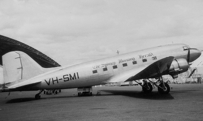 VH-SMI. The Sydney Morning Herald - in the full livery at Brisbane Airport, March 1948.