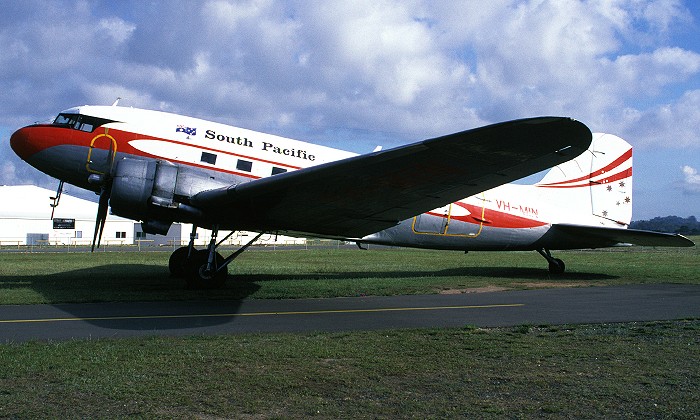 VH-MIN. South Pacific - in the Rebel Air livery at Brisbane Airport, June 1996.