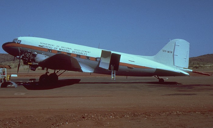 VH-MIN. Bureau of Mineral Resources - in the full livery at Mt Isa Airport, date unknown.