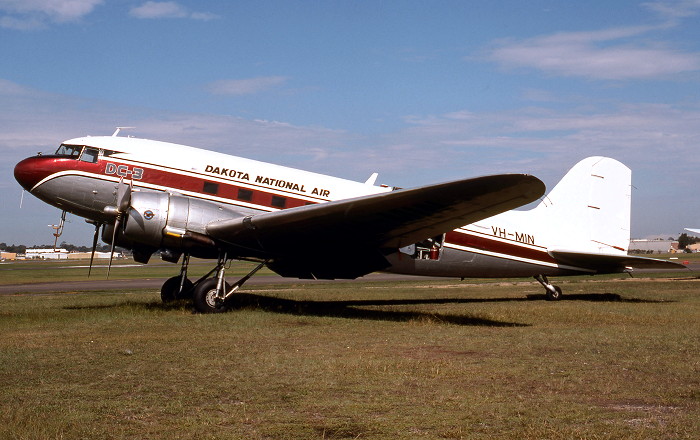VH-MIN. Dakota National Air - in the full livery at Sydney's Bankstown Airport, February 2000.