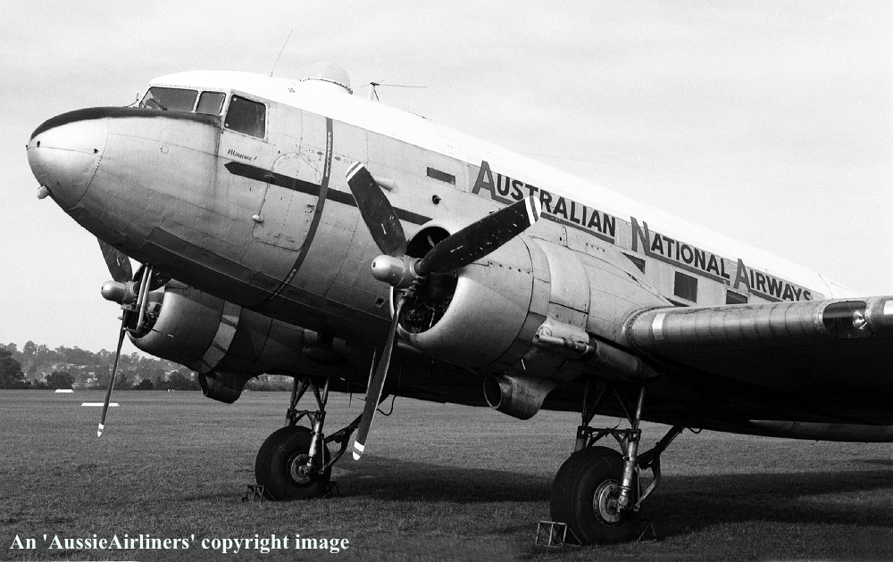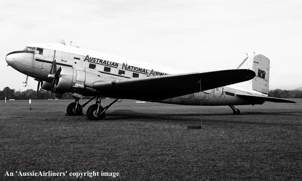 A65-102. Australian National Airways - in the basic R.A.A.F. livery painted up as 'VH-ANA' for a movie at Camden Airport, June 21, 1987. (E. D. Daw Copyright Image 0251-040.) |