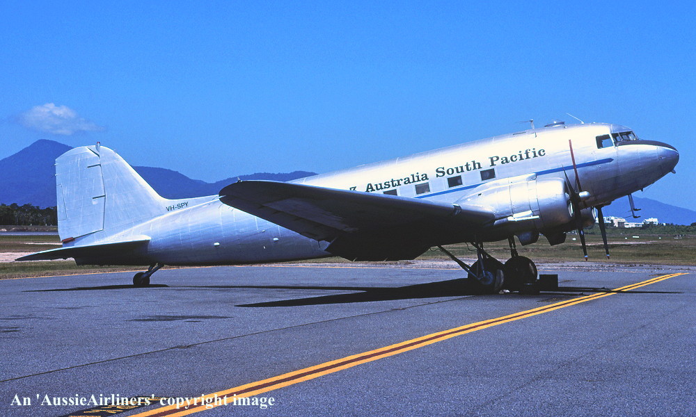 VH-SPY. DC-3 Australia South Pacific - in the basic R.A.A.F. livery at Cairns Airport, September 1999. (R. N. Smith Collection Copyright Image 0251-693.) |