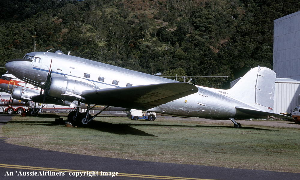VH-SPY. DC-3 Australia South Pacific - in the basic R.A.A.F. livery at Cairns Airport, May 1998. (R. N. Smith Collection Copyright Image 0251-773.) |