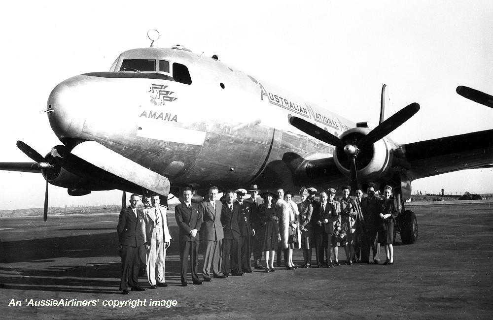 This aircraft was ordered new by Australian National Airways in 1944 Entered onto the Australian Aircraft Register as VH-ANA - November 01, 1945 Registered to Australian National Airways Pty Ltd, Melbourne First flown - January 28, 1946 Aircraft was named 'Amana' (Hands Across) by Australian actress Ann Richards Flown Santa Monica - Las Vegas for acceptance by A.N.A. - February 05, 1946 This was done to minimise the Californian taxes payable on this aircraft Departed Las Vegas on the delivery flight to Australia - February 05, 1946 It was originally intended to land at Sydney (Kingsford Smith) but this was changed mid flight It arrived at Melbourne (Essendon) on completion of the delivery flight - February 09, 1946 Delivery route: Las Vegas - San Francisco - Honolulu - Canton Island - Nadi - Melbourne Flight crew: Captains W. Morrissey (Douglas Test Pilot), P. T. L. Taylor; Navigator J. T. Caswell; R/O L. S. Moore; Engineer J. Neale; LAME J. Stubbs Operated its first revenue service (Douglas Captain Bill Morrissey) - February 11, 1946 Douglas supplied training for A.N.A. crews for 30 days after delivery Established record on Perth - Melbourne route (Captain W. Morrissey) of 6 hours 16 minutes - February 25, 1946 Established record on Melbourne - Perth route - March 1946 Flight crew: Capts P. T. L. Taylor, A. Lovell; F/O D. Way Established record on Melbourne - Sydney - Auckland demonstration flight - March 07, 1946 Flight crew: Capts P. T. L. Taylor, P. Gibbs; F/O D. Way Established speed record on Perth - Melbourne service of 483 km/h for the 2,929 km flight - September 1946 Chartered on an ad hoc basis to B.C.P.A. for trans Pacific services - September 15, 1946 to April 21, 1948 Operated first of a number migrant charters to Rome (Captains P. T. L. Taylor, P. Gibbs) - August 03, 1948 Route: Sydney - Darwin - Singapore - Calcutta - Karachi - Cyprus - Rome - Cyprus - Karachi - Ceylon - Batavia - Darwin - Melbourne The aircraft was destroyed when it crashed on the property 'Betty Bow' 19 km NW of York, W.A. - June 26, 1950 The accident occurred some 13 minutes after departing Perth (Guildford) at 2200 hours The crew of 5 and 24 passengers were killed Flight crew: Captain R. J. C. Chapple; F/O R. H. Willis; 2nd Officer V. M. Trevitt; Hostesses J. W. Graham, M.A.E. Britton Passengers: Mr V. C. Anquetil, Mr E. S. Baker, Very Rev. N. Blow, Mr J. Boklak, Mrs I. Borszeky & infant, Mr P. Capelette, Mr G. Carmichael, Mr K. Douglas, Mr D. N. Engler, Master J. Engler, Mr V. Finegan, Mr E. W. Forwood, Mr T. R. Graham, Mrs G. Haese, Miss S. J. Haese, Miss M. McDougall, Miss D. M. McHenry, Mrs M. A. M. Morrison, Right Rev. Dr C. Murray, Mr L. Orszab, Mr S. Pawlowski, Mr I. H. Simpson, Mr Tan Jee Hoe At the time this was Australia's worst airline accident It was operating the Perth - Adelaide leg of the Perth - Adelaide - Melbourne service The exact cause of the accident was never resolved Cancelled from the Australian Aircraft Register - July 19, 1950 A memorial plaque was erected in the main street of Beverley, W.A. - June 26, 2001 To read a detailed account of this accident please click 'HERE' |