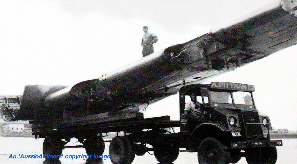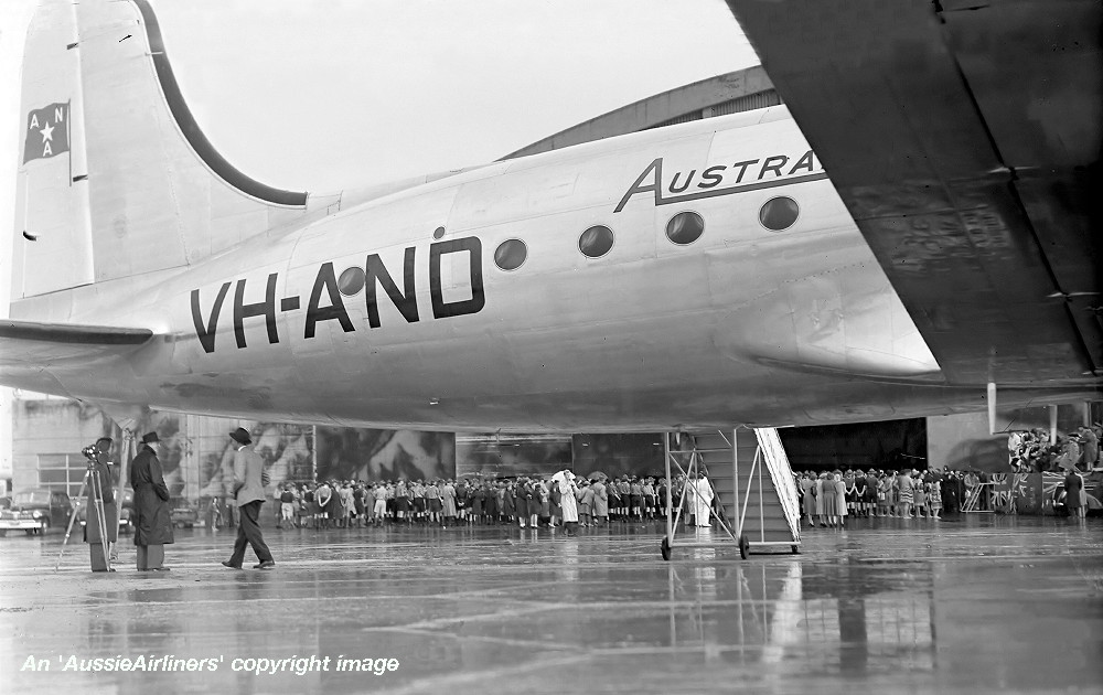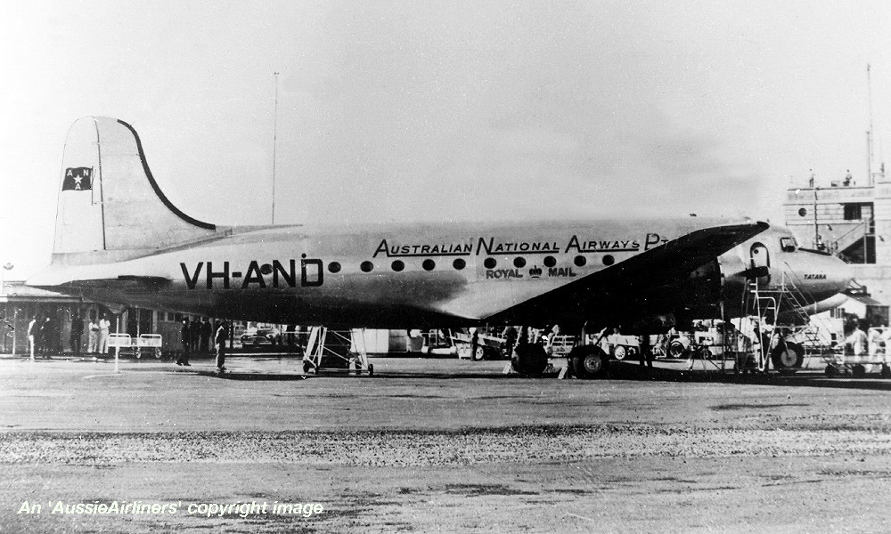 This aircraft was ordered new by Australian National Airways Pty Ltd - 1944 Entered onto the Australian Aircraft Register as VH-AND - November 01, 1945 Registered to Australian National Airways Pty Ltd, Melbourne The aircraft was named 'Tatana' (father) by Marie Wilson at Santa Monica, California Accepted by A. N. A. at Santa Monica but the sale was conducted in Las Vegas - June 10, 1946 Departed San Francisco on the delivery flight to Australia - June 11, 1946 It arrived at Melbourne (Essendon) on completion of the delivery flight - June 15, 1946 Delivery route: Las Vegas - San Francisco - Honolulu - Canton Island - Suva - Sydney - Melbourne Flight crew: Captains A. Lovell, S. McDonald, J. Presgrave; Navigator H. Farley, Radio Operator W. Pinwill; Flight Engineer L. Reeding; Hostesses Lawler and Hanson Entered Australian service with A.N.A. - June 1946 It was used to survey the Australia - U. S. A. route - July 03, 1946 to July 14, 1946 Chartered on an ad hoc basis by B.C.P.A. for trans-Pacific services - September 15, 1946 to April 21, 1948 Operated the first B.C.P.A. Auckland - Vancouver service - April 25, 1947 Departed Melbourne (Essendon) on a migrant charter (Captain P. Gibbs; F/O V. Cherche) - February 22, 1949 Route: Melbourne - Darwin - Singapore - Colombo - Karachi - Cairo - Rome - London Departed London on the return migrant charter to Australia - March 01, 1949 It crashed at Sydney (Kingsford Smith) during a heavy landing on a shortened runway - October 16, 1952 Flight crew: Captain R. Maher; F/O K. Loughnan The aircraft struck a drain at the end of the runway causing the undercarriage to rupture the fuel tanks No fire resulted from this accident and no injuries were sustained by the crew Considered to be uneconomical to repair Salvaged and transported to Melbourne by road but it was not repaired Cancelled from the Australian Aircraft Register - August 30, 1955 |