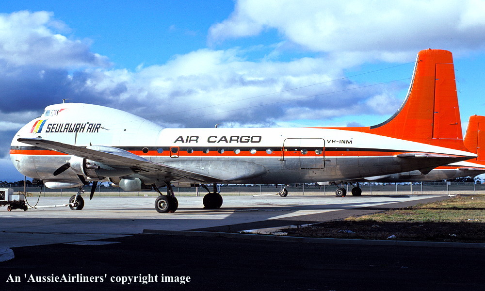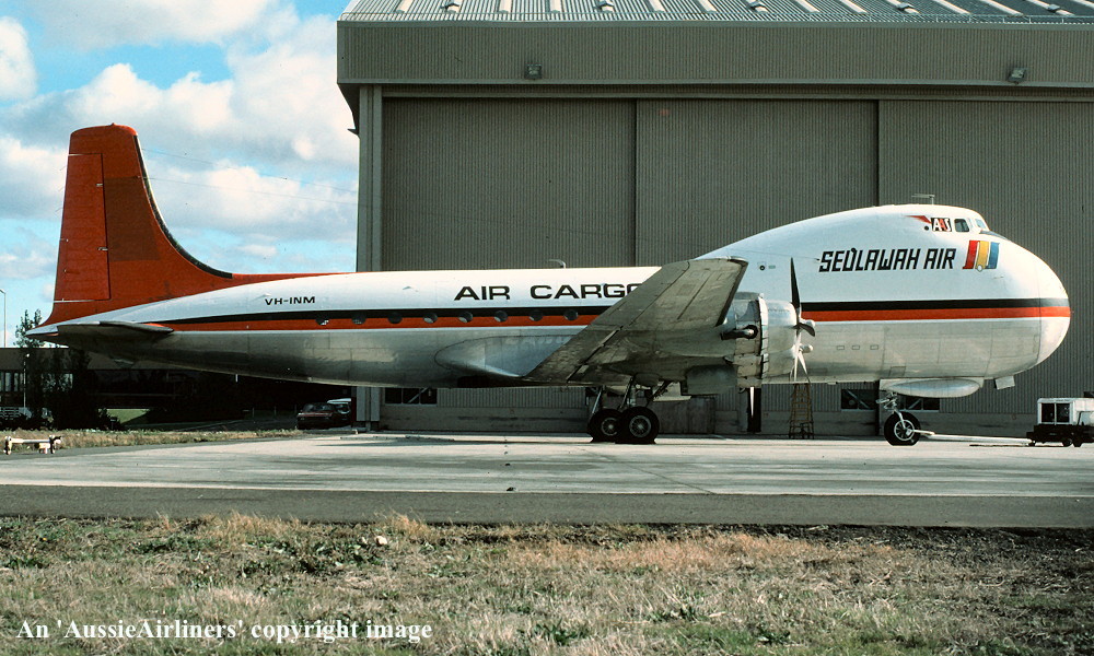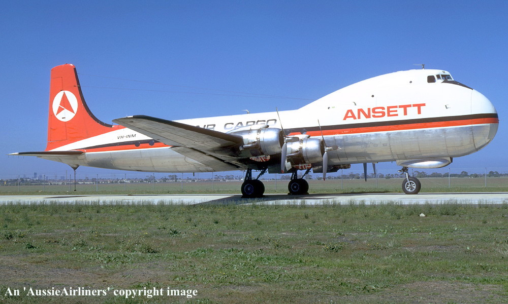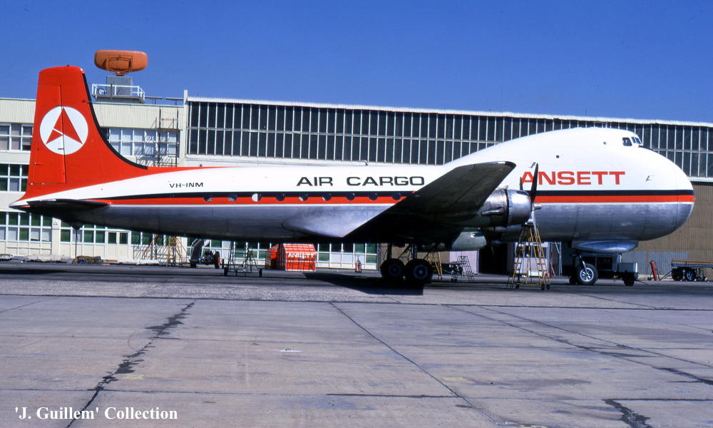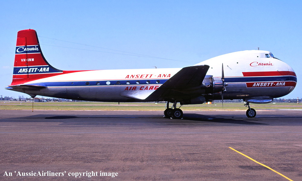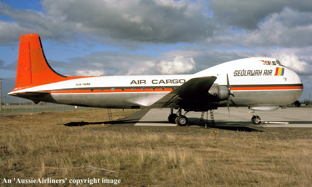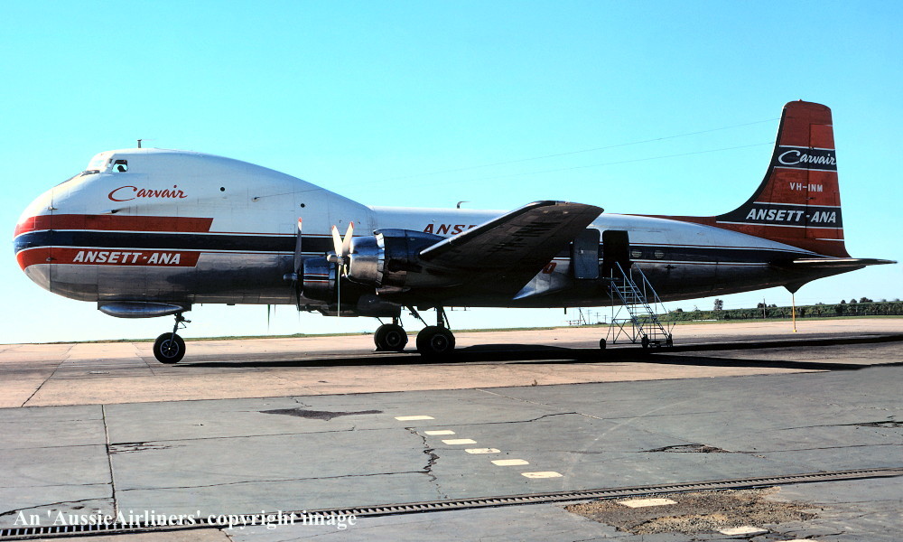 VH-INM. Douglas C-54E-10-DC. c/n 27314. Was also registered as: 44-9088; NC88881; JA-6015. VH-INM. Aviation Traders ATL-98A Carvair. c/n 27314-21. Was also registered as: N54596; ZK-NWB; N5459M; 9J-PAA. |