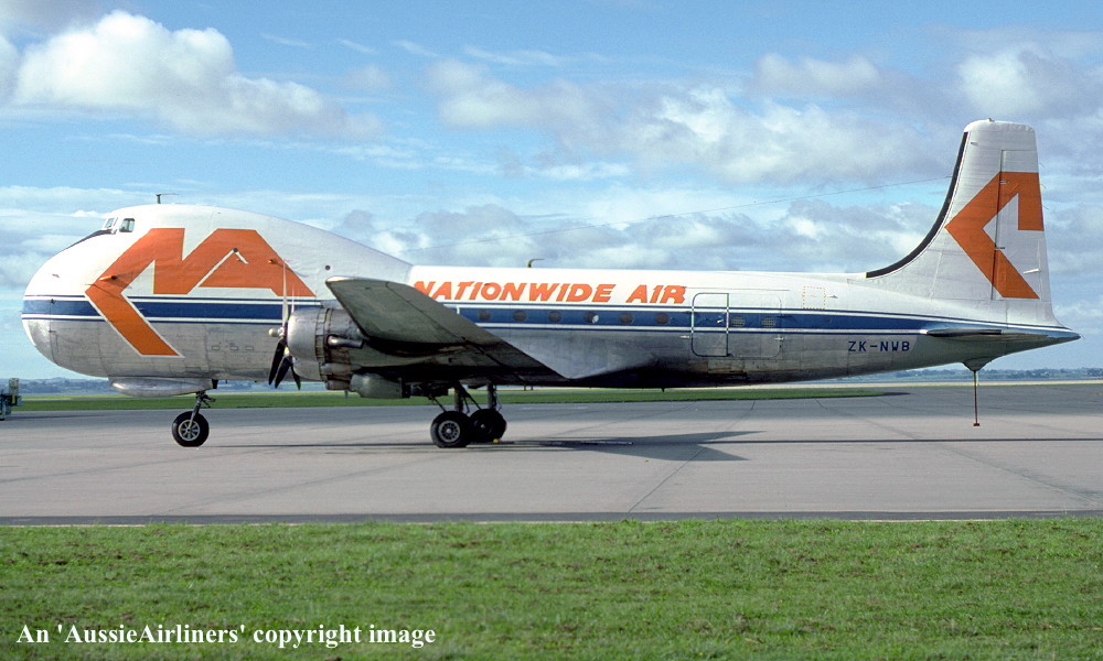 ZK-NWB. Nationwide Air - in the standard livery at Wellington Airport, May 06, 1979. (R. N. Smith Collection Copyright Image 1125-736.) |