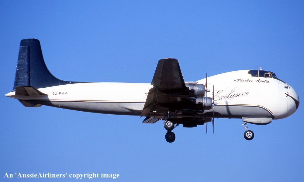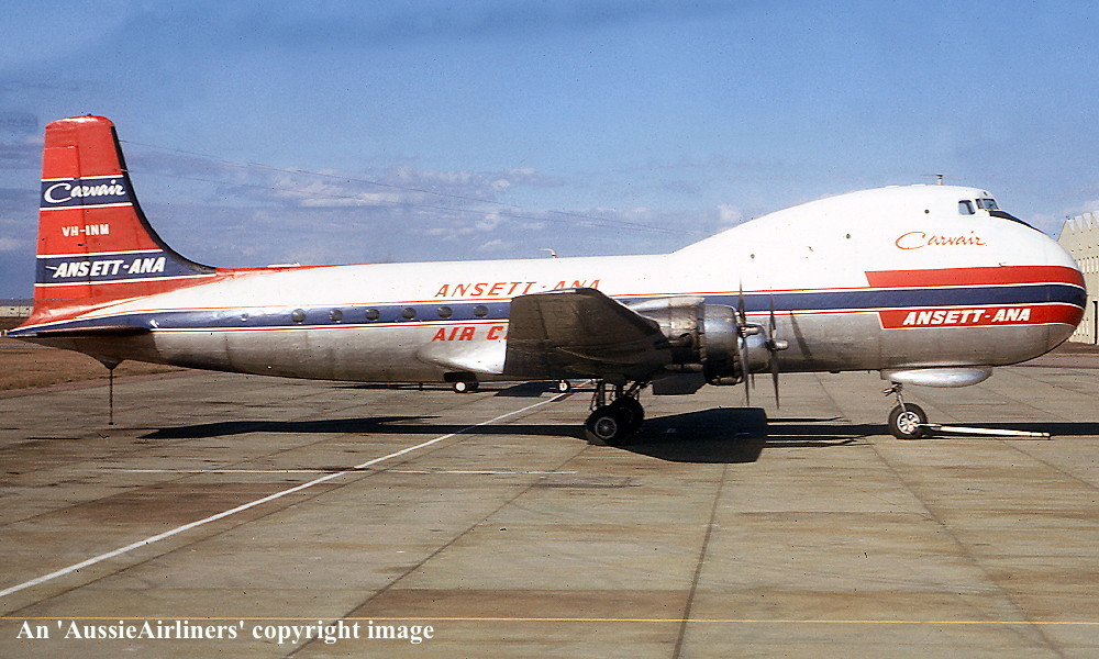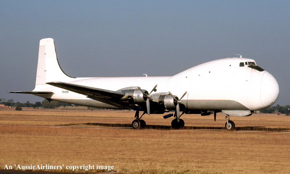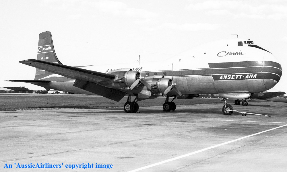 This aircraft was originally built as a Douglas C-54E-10-DC It was delivered to the United States Army Air Force as '44-9088' - April 07, 1945 Sold to Douglas for conversion to DC-4 standard - November 14, 1945 Sold to Pan American World Airways Inc - December 23, 1945 Entered onto the United States Aircraft Register as NC88881 - ? The aircraft was originally named 'Clipper Kit Carson' It was later named 'Clipper Golden West' and then 'Clipper Red Rover' Sold to Japan Air Lines - February 15, 1958 Entered onto the Japanese Aircraft Register as JA-6015 - ? The aircraft was named 'Amagi' Ansett-ANA advised the Department of Civil Aviation of its intent to purchase 'JA-6015' - March 10, 1965 The registration marks 'VH-INM' reserved - March 10, 1965 Sold to Ansett-A.N.A. for use as a freighter - March 18, 1965 The acceptance test flight was carried out at Tokyo (Captain A. Lovell) - March 18, 1965 Entered onto the Australian Aircraft Register as VH-INM - March 19, 1965 Registered to Australian National Airways Pty Ltd, Melbourne Departed Tokyo on the ferry flight to Australia in basic JAL livery - March 23, 1965 It arrived at Melbourne (Essendon) on completion of the ferry flight - March 25, 1965 Flight crew: Captains S. Telford, A. Groser, B. Chapan; Engineer C. Burns; Navigator W. C. Kennedy Commenced freighter services with Ansett-ANA - May 1965 Leased to M.M.A. as a freighter for short periods - 1965 Withdrawn from service and stored in the Melbourne (Essendon) Airport graveyard - 1967 Maintenance work commenced to prepare the aircraft for the ferry flight to the United Kingdom - January 1968 This aircraft was earmarked for conversion by Aviation Traders to an ATL-98A Carvair freighter Departed Melbourne (Essendon) on the ferry flight to the United Kingdom - February 22, 1968 It arrived at Southend on completion of the ferry flight (57 hours flying time) - February 29, 1968 Ferry route: Melbourne - Alice Springs - Darwin - Denpasar - Singapore - Bangkok - Calcutta - Karachi - Bahrain - Damascus - Athens - Marseilles - Southend Flight crew: Captains J. Coakley, N. Currey, W. Oldcastle; Engineer P. Kettner Conversion work commenced at Southend on what would be the final Carvair conversion - March 1968 Nose section was removed from the aircraft - March 13, 1968 The new nose and cockpit section used was one of the remaining unused units stored at Stansted Cancelled from the Australian Aircraft Register - April 16, 1968 Re-flown as a ATL-98A Carvair - July 12, 1968 Entered onto the Australian Aircraft Register as VH-INM - July 16, 1968 Registered to Ansett Transport Industries (Operations) Pty Ltd, Melbourne Departed Stansted on the ferry flight to Australia - July 19, 1968 It arrived at Melbourne (Essendon) on completion of the ferry flight - July 26, 1968 Ferry route: Stansted - Athens - Damascus - Bahrain - Karachi - Calcutta - Bangkok - Singapore - Denpasar - Darwin - Melbourne Operated its first revenue service Melbourne (Essendon) - Devonport - August 01, 1968 Ansett-ANA was renamed Ansett Airlines of Australia - December 01, 1968 Repainted into the Ansett Airlines of Australia Air Cago 'delta' livery - January 1971 Operated its final freighter service - February 01, 1973 Withdrawn from use and placed in storage at Melbourne (Tullamarine) Airport awaiting sale Sold to Australian Aircrat Sales Pty Ltd (AAS) - January 01, 1974 Test flown at Melbourne (Tullamarine) in preparation for lease / sale to Seulawah Air Services - January 15, 1974 This lease / sale did not eventuate The 'AAS' logo applied behind the cockpit window - January 1974 It remained stored at Melbourne (Tullamarine) Airport New lease / sale agreement negotiated with Seulawah Mandala Air Services, Jakarta - May 1975 Test flown at Melbourne (Tullamarine) Airport - June 22, 1975 'Seulawah Air' titles applied to the aircraft whilst retaining the 'AAS' logo - July 04, 1975 Departed Melbourne (Tullamarine) on the ferry flight to Indonesia (Captain J. Presgrave) - July 17, 1975 Ferry route: Melbourne - Alice Springs - Darwin - Denpasar - Jakarta Cancelled from the Australian Aircraft Register - August 28, 1975 The lease to Seulawah collapsed and ownership reverted to Australian Aircraft Sales Pty Ltd - December 1975 Aircraft was clandestinely ferried Jakarta - Singapore by A.A.S. crew - January 1976 This flight was unauthorised as the aircraft was unregistered and there was little chance of the Australian registration and certification being restored whilst the aircraft was located outside Australia This action was taken as A.A.S. were worried that the aircraft would be impounded by the Indonesian Government Stored at Singapore (Seletar) - January 16, 1976 Offered for immediate sale by Dwen Airmotive, Auckland, New Zealand - October 1976 It was observed stored at Singapore (Seletar) in good condition - December 1976 Discussions were held with Air Express, Brisbane, Queensland on a possible sale - 1977 Advertised for immediate sale by Australian Aircraft Sales Pty Ltd - August 1977 It was quoted that the aircraft had flown 53,931 hours The New Zealand company Car Haulaways Ltd initiate a 'sale enquiry' via Dennis Thompson Ltd - January 1978 A direct sale counld not be effected as the aircraft was not registered in any country If registered in New Zealand it would be 'first-of-type' on the New Zealand Aircraft Register and would require a new Type Certification A.A.S. instructs Singapore General Aviation Services Pte Ltd (SINGAS) to register the aircraft - January 1978 The only way to achieve New Zealand Certification is to first have the aircraft registered in the United States The certification was handled by the F.A.A. office in Honolulu A 'Bill of Sale' from Air Australia (Singapore) Pte Ltd to James A. Cunningham, c/- American Aircraft Sales, Bethesda, Maryland is issued - March 17, 1978 Entered onto the United States Aircraft Register as N54596 - March 30, 1978 Registered to James A. Cunningham, Bethesda, Maryland (James A. C