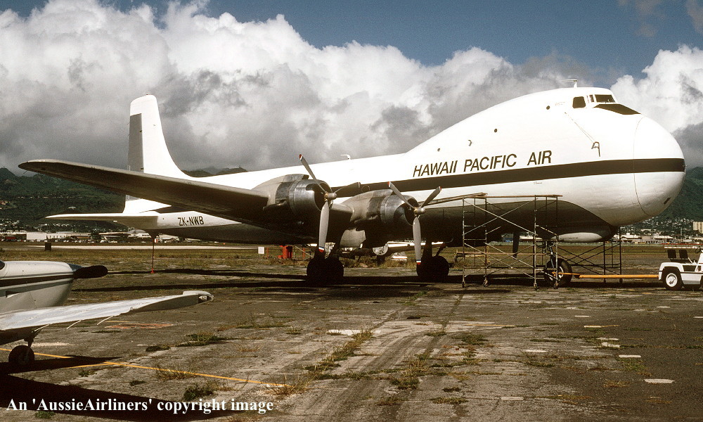 ZK-NWB. Hawaii Pacific Air - in the standard livery at Honolulu Airport, date unknown. (R. N. Smith Collection Copyright Image 1125-213.) |