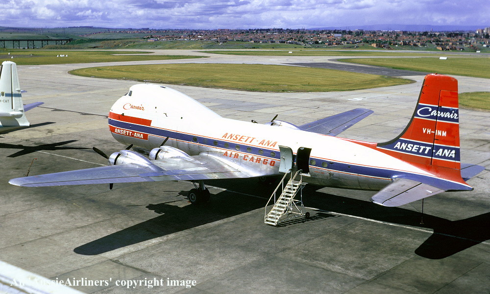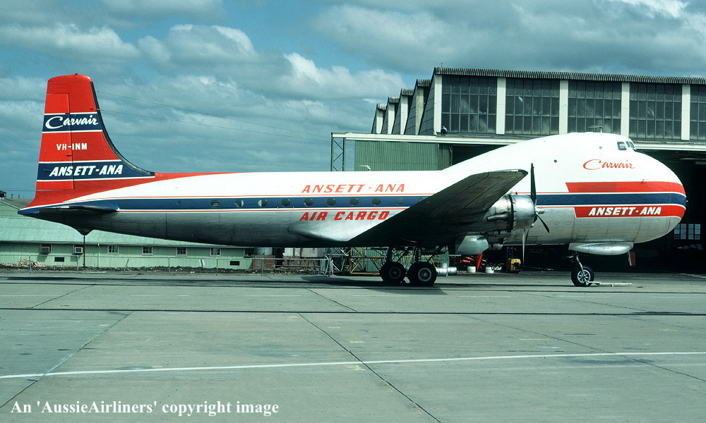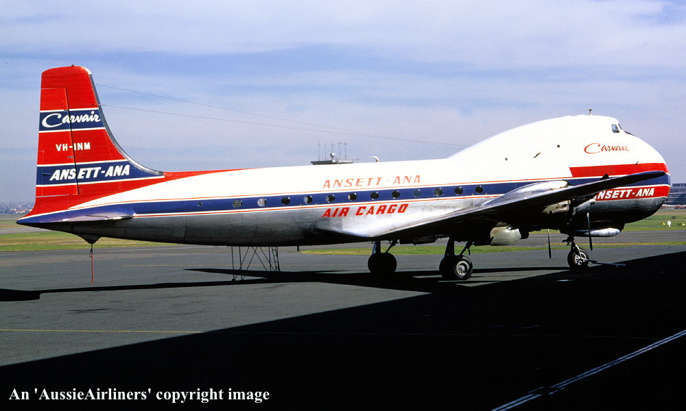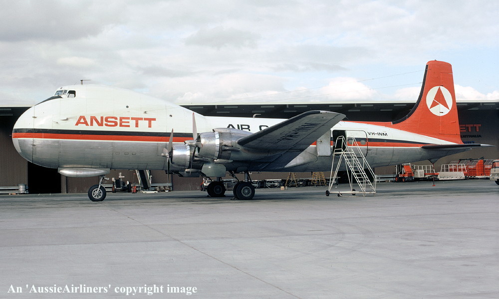 VH-INM. Ansett-ANA Air Cargo - in the standard livery at Sydney Kingsford Smith Airport, May 1969. (R. N. Smith Copyright Image 1125-270.) |