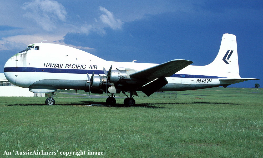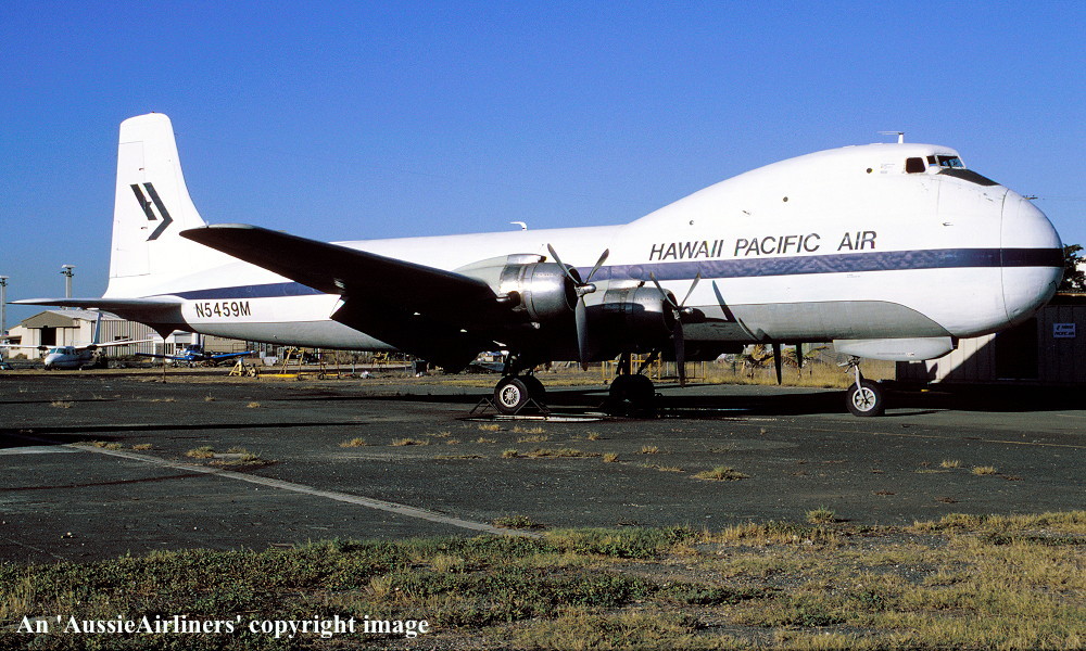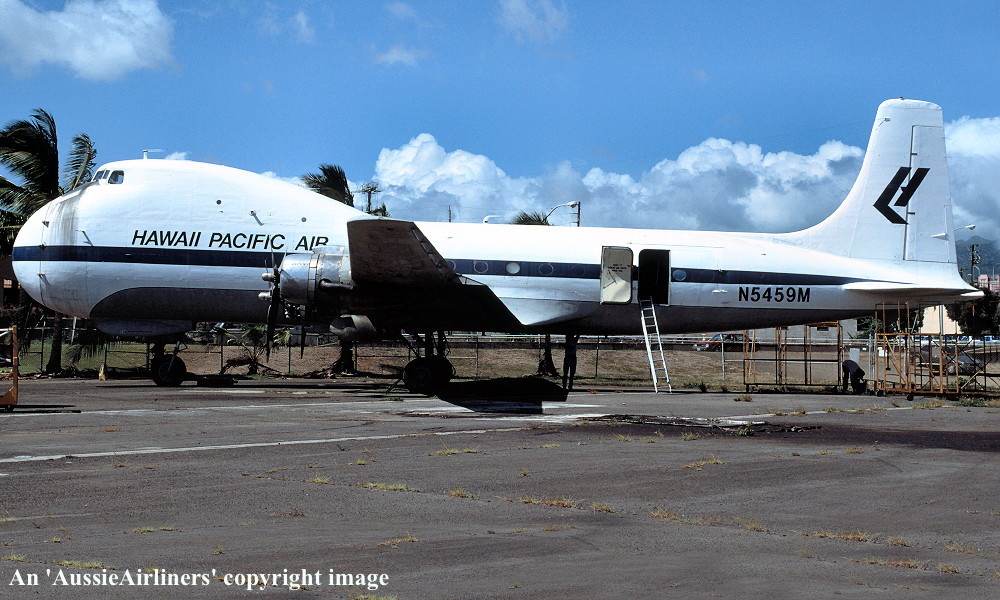 N5459M. Hawaii Pacific Air - in the standard livery at Johannesburg Airport, November 1996. (I. Malcolm Copyright Image 1125-276.) |