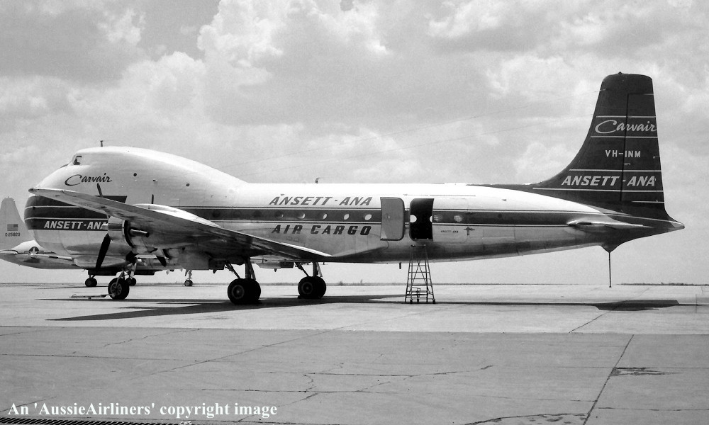VH-INM. Ansett-ANA Air Cargo - in the standard livery at Melbourne Essendon Airport, November 1970. (R. N. Smith Copyright Image 1125-271.) |