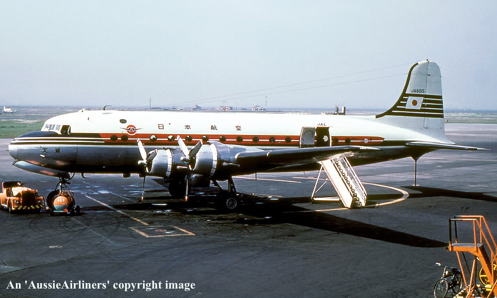 JA-8015. Japan Air Lines - 'Amagi' in the standard livery at Tokyo Airport, October 1963. (R. N. Smith Collection Copyright Image 1125-533.) |