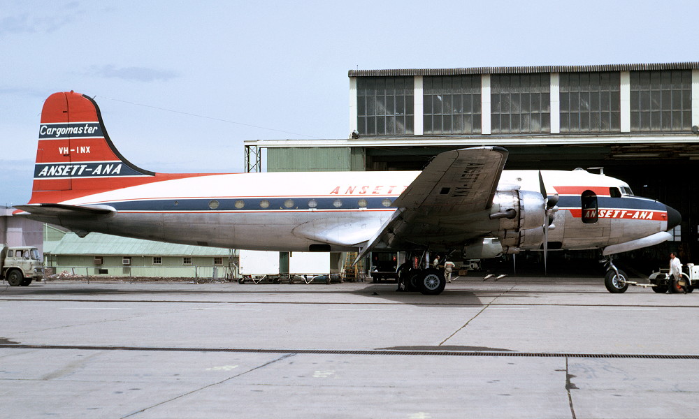 VH-INX. Ansett-ANA Cargomaster - in the standard livery at Melbourne Essendon Airport, November 1969.