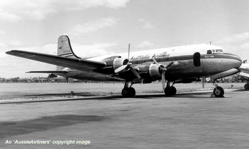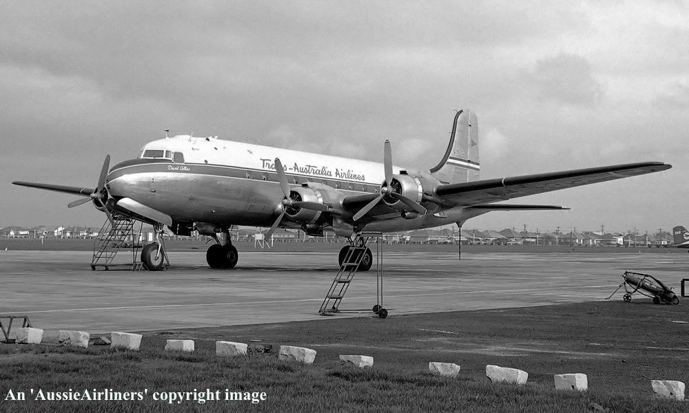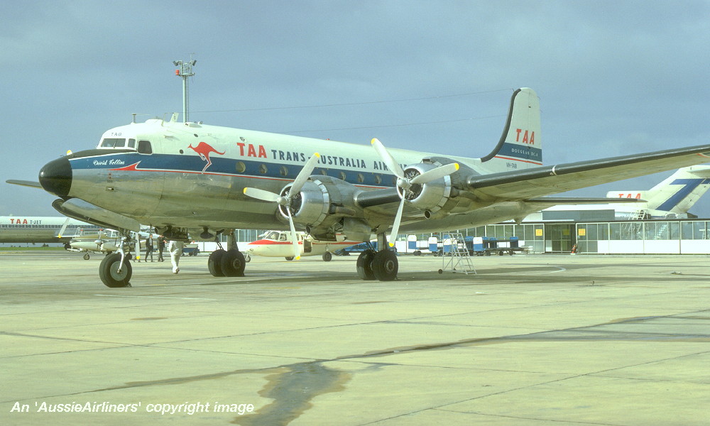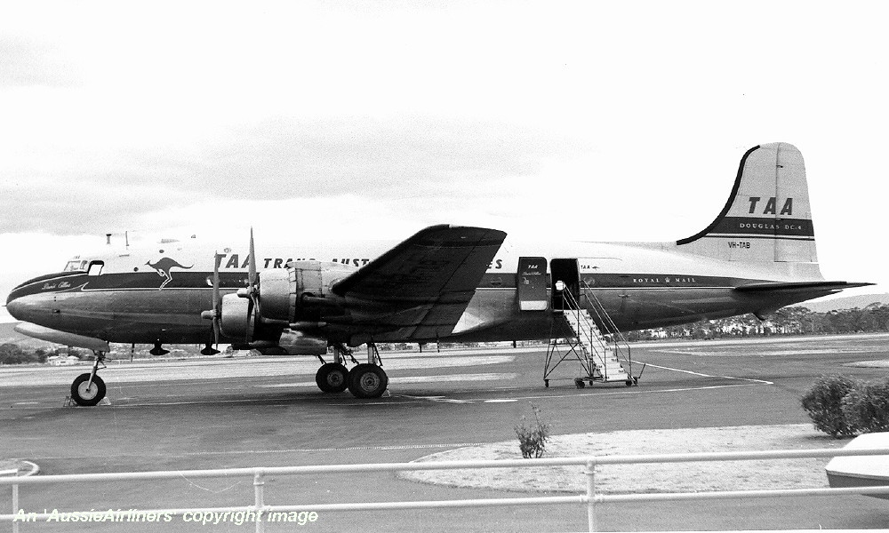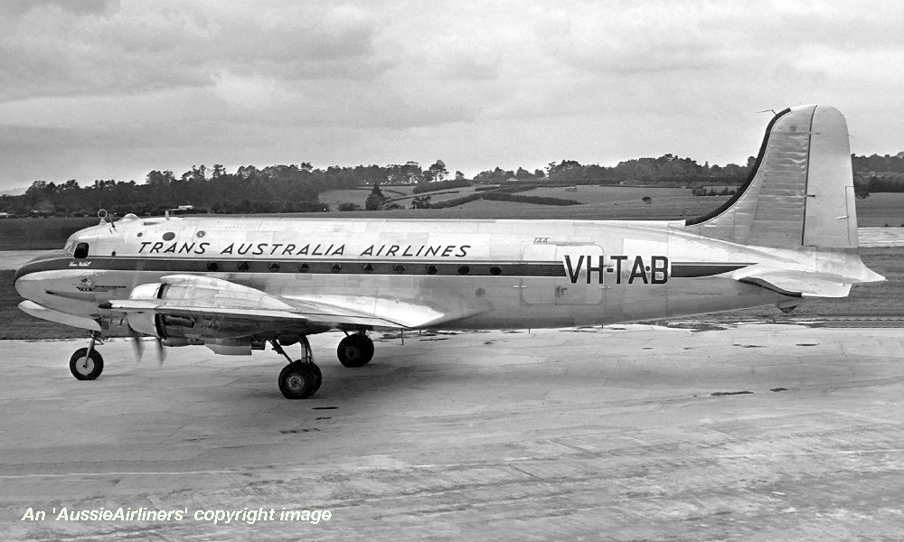 VH-TAB. Trans-Australia Airlines - 'David Collins' in the revised livery at Brisbane Archerfield Airport, date unknown. (R. N. Smith Collection Copyright Image 1125-155.) |
