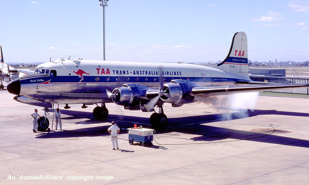 VH-TAB. TAA Trans-Australia Airlines - 'David Collins' in the final livery at Sydney Kingsford Smith Airport, January 1969. (R. N. Smith Collection Copyright Image 1125-030.) |