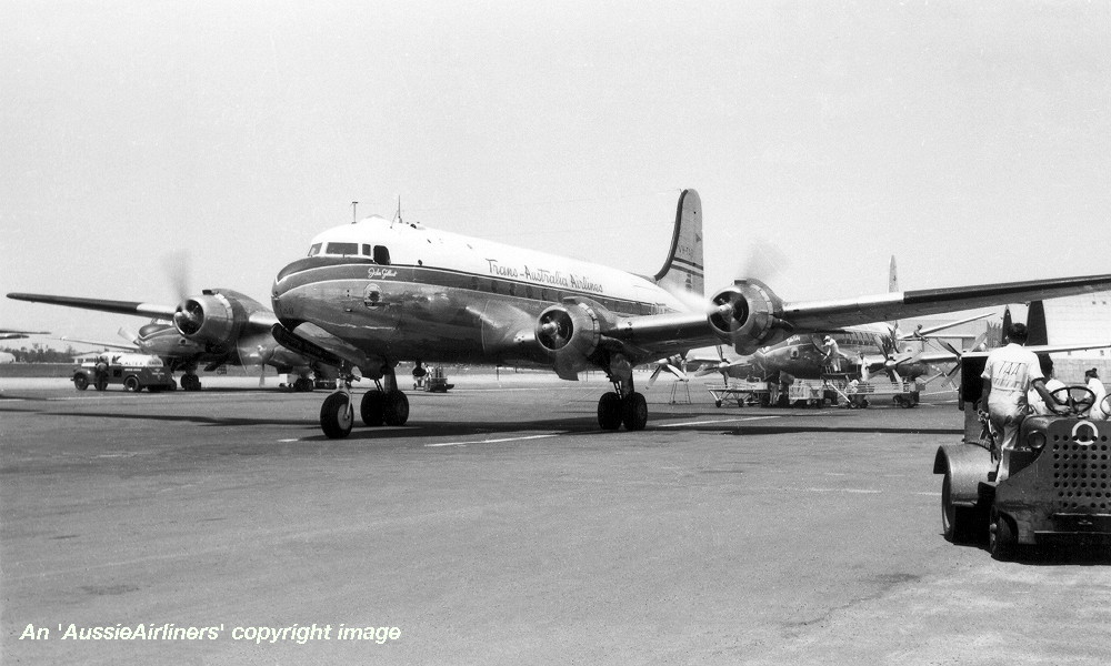 This aircraft was ordered new by Trans-Australia Airlines - ? Entered onto the Australian Aircraft Register as VH-TAB - August 28, 1946 Registered to Department of Civil Aviation, Melbourne Accepted by Trans-Australia Airlines at Burbank - October 07, 1946 Departed Burbank on the delivery flight to Australia - October 12, 1946 Arrived Melbourne (Essendon) on completion of the delivery flight - October 15, 1946 It established a record flight time of 38 hours 13 minutes for the trans-Pacific crossing Flight crew: Captain J. B. Chastian (Douglas); Captain C. O. Dowie (TAA) Known passengers: J. L. Watkins (T.A.A.); R. Baer (United Aircraft Services); Hannan, Greenhill (civilians) The aircraft was named 'Thomas Mitchell' Registered to Australian National Airlines Commission, Melbourne - November 04, 1946 It operated its first revenue service - November 04, 1946 Leased to British Commonwealth Pacific Airlines - April 30, 1948 to February 23, 1949 It was reregistered as VH-BPB - ? The aircraft was renamed 'Endeavour' Returned to Trans-Australian Airlines at the end of the lease - February 23, 1949 The aircraft was reregistered as VH-TAB - ? It was renamed 'John Gilbert' This aircraft was converted to a passenger / freighter configuration by T. A. A. - 1959 It was leased to Ansett-ANA - September 1959 During the lease it was operated in the basic T.A.A. livery with red Ansett-ANA titles applied to the cabin roof After the lease it was repainted into the standard T. A. A. livery and renamed 'David Collins' It was operated 'under charter' to Qantas Airways several times - early 1969 It was withdrawn from service and stored at Melbourne (Essendon) Airport - March 31, 1969 Sold to Flying Tiger Line but not registered to them - October 17, 1969 Departed Melbourne (Essendon) on the ferry flight to Saigon, Vietnam - October 1969 Cancelled from the Australian Aircraft Register - October 21, 1969 Sold to Air Vietnam - February 23, 1970 Entered onto the Vietnamese Aircraft Register as XV-NUL - ? The eventual fate of this aircraft is unclear |