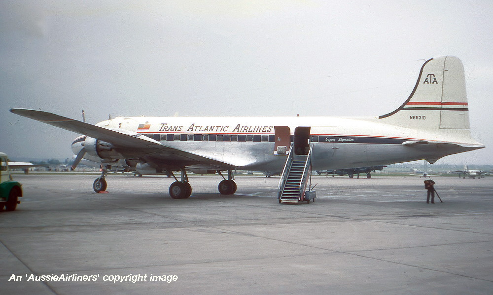 N6531D. Trans Atlantic Airlines - in the standard livery at Paris le Bourget Airport, circa 1963. (R. N. Smith Collection Copyright Image 1125-562.) |