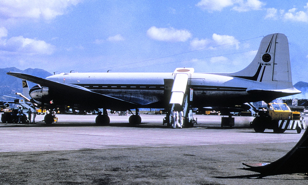 B-1805. Vietnam Airlines - in the basic China Airlines livery at Hong Kong Airport, February 1970. (R. N. Smith Collection Copyright Image 1125-120.) |