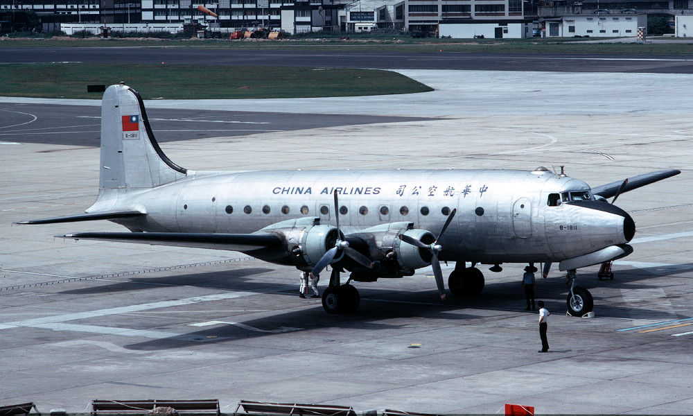 B-1811. China Airlines - in the all-metal livery at Hong Kong Airport, June 1974. (R. N. Smith Collection Copyright Image 1125-481.) |