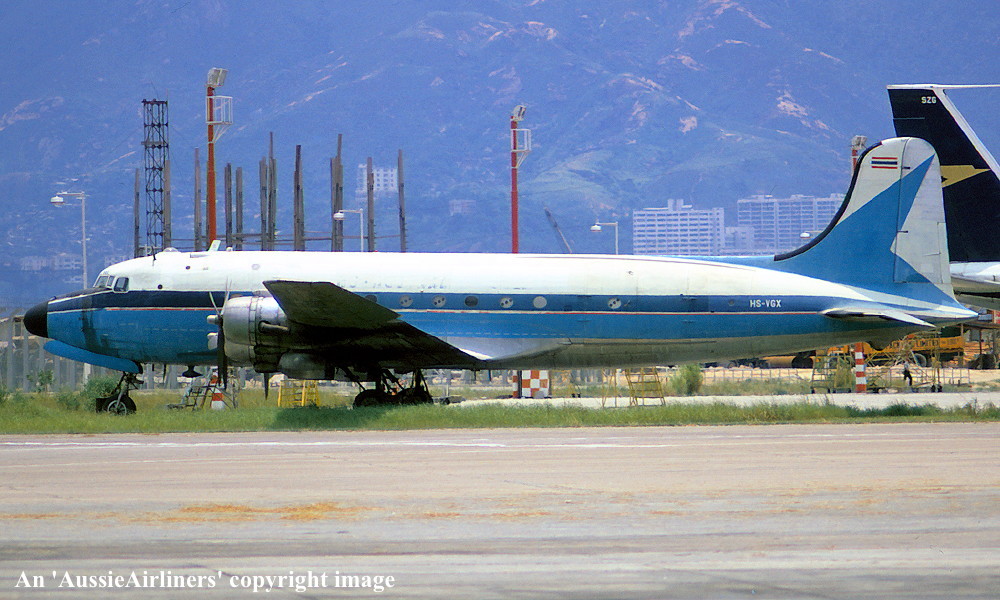 HS-VGX. Air Siam Cargo - in the basic livery at Hong Kong Kai Tak Airport, August 13, 1974. (P. de Groot Copyright Image 1125-279.) |