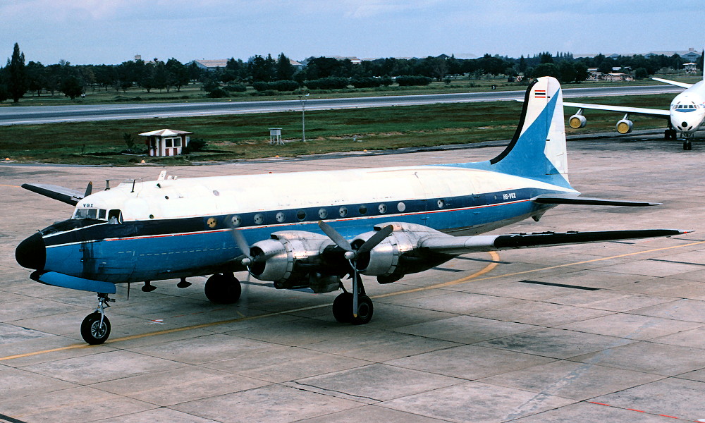 HS-VGX. Air Siam Cargo - in the basic livery at Bangkok Airport, December 1973. (R. N. Smith Collection Copyright Image 1125-480.)