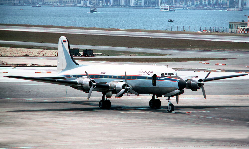 HS-VGZ. Air Siam Cargo - 'Petchabuna' in the standard livery at Hong Kong Airport, May 1970. (R. N. Smith Collection Copyright Image 1125-449.)