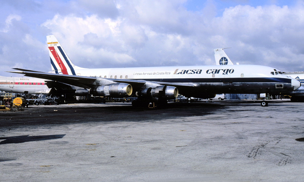 EC-BMV. Lineas Aereas de Costra Rica - in the old livery at Miami Airport, July 1984. (R. N. Smith Collection Copyright Image 1130-120.)