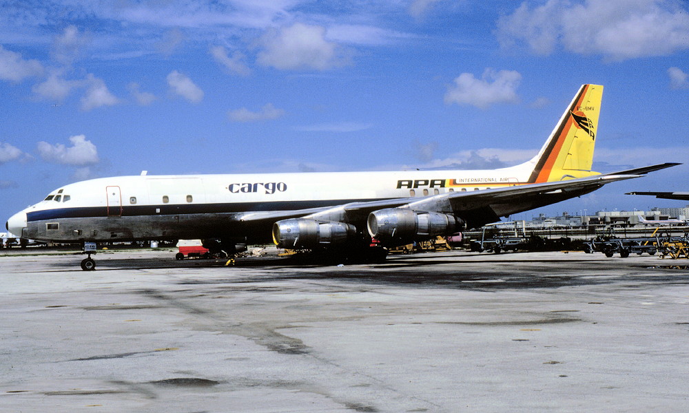 EC-BMV. APA International Air Cargo - in the old livery at Miami Airport, July 1984. (R. N. Smith Collection Copyright Image 1130-121.) |