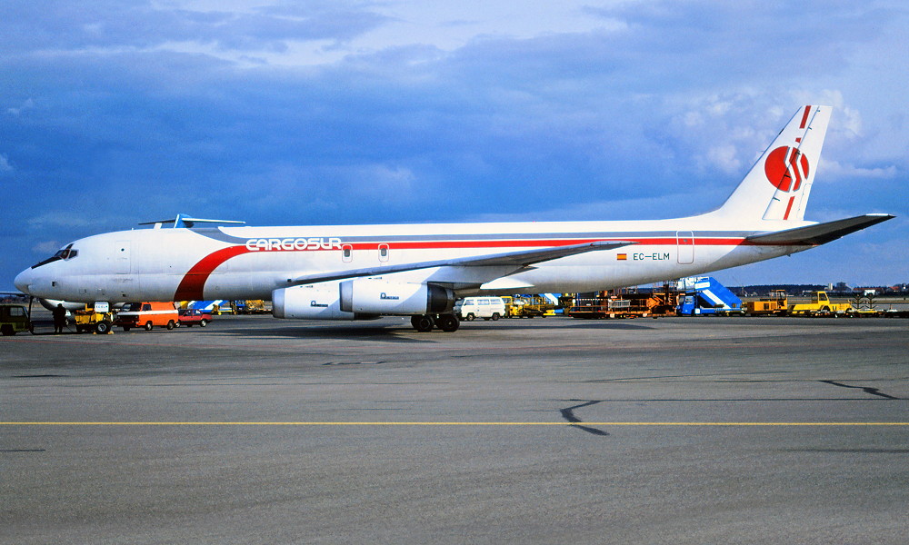 EC-ELM. Cargosur - in the standard livery at an unknown airport, March 1989.