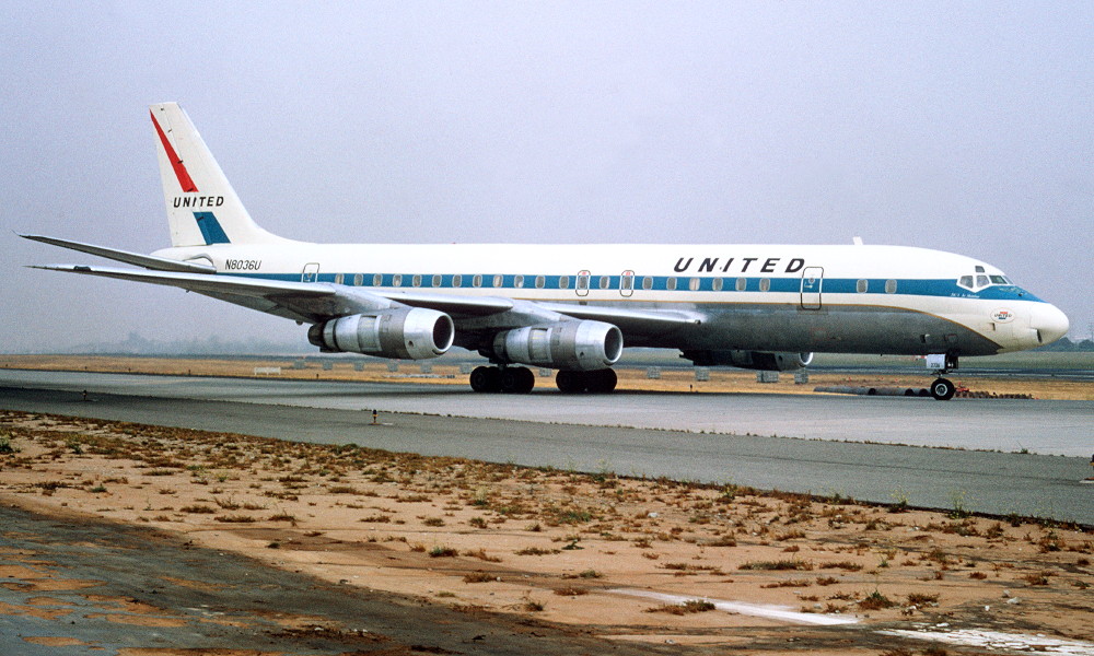 N8036U. United - in the old livery at an unknown airport, date unknown.