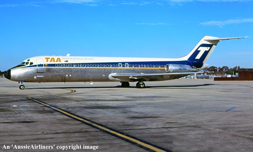 VH-TJR. TAA Trans Australia Airlines - 'George Bass' in the standard livery at Sydney Kingsford Smith Airport, September 1981. (R. N. Smith Copyright Image 1135-383.) |