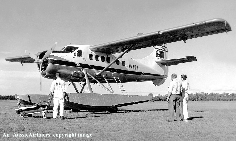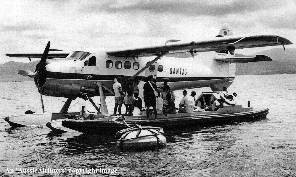 This was the first of four aircraft ordered by Qantas Airways Ltd - ? Built by de Havilland Aircraft of Canada Ltd, Downsview, Toronto, Ontario, Canada Powered by Pratt and Whitney R.1340 Wasp engines The aircraft plus the amphibian kits were shipped from St. Johns, Canada on the S. S. Port Adelaide - March 01, 1958 Delivered by de Havilland Canada to de Havilland Australia at Sydney (Bankstown) - April 14, 1958 Purchased by Qantas Airways from de Havilland Australia, Bankstown Accepted by Qantas in joint handover ceremony at Sydney (Bankstown) with VH-EAX - May 27, 1958 Entered onto Australian Aircraft Register as VH-EAW - May 27, 1958 Registered to Qantas Airways Ltd, Sydney The aircraft was named ‘Kikori’ (Papua) at Port Moresby - June 04, 1958 Delivered for operations in Papua New Guinea as an amphibian Sold to Trans Australian Airlines (T.A.A.) - September 01, 1960 Reregistered as VH-SBQ - December 08, 1960 The aircraft retained name ‘Kikori’ (Papua) It was forced to ditch into sea 10 miles west of Samari, Papua New Guinea - April 14, 1961 The engine lost power due cylinder problems, 2 crew and 7 passengers were uninjured The aircraft subsequently drifted onto rocks and was damaged beyond repair It was salvaged and then reduced to spares |