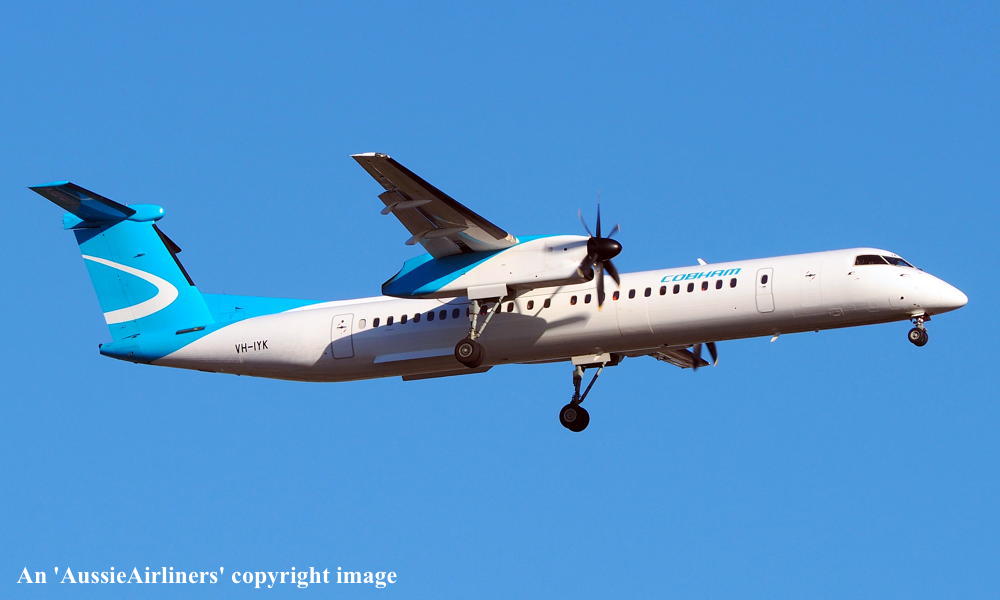 VH-IYK. Bombardier DHC-8-402. c/n 4538. Was also registered as: D-ABQR; OE-IIO. |