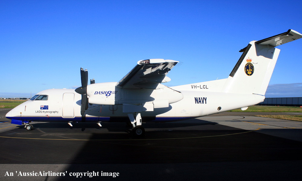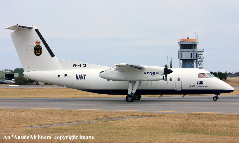 VH-LCL. Navy LADS Hydrography - in the standard livery at Hobart Airport, February 14, 2011. (R. Finlayson Copyright Image 2923-345.) |