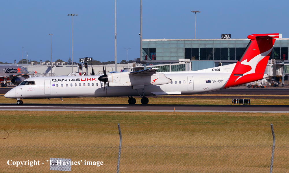 VH-QOY. Bombardier DHC-8-402Q. c/n 4288. Was also registered as: C-FZGG. |