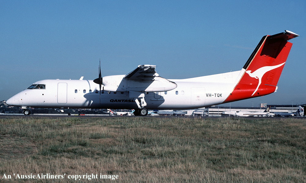 VH-TQK. QantasLink - in the old livery at Sydney Kingsford Smith Airport, February 2006. (R. N. Smith Copyright Image 2923-365.) |