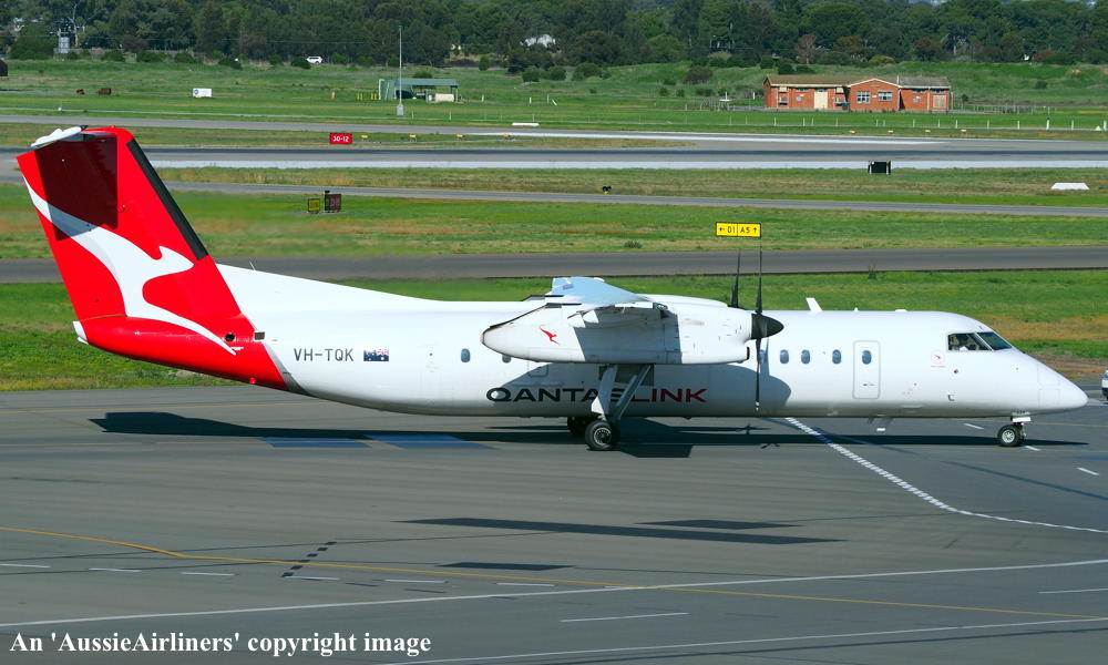 VH-TQK. QantasLink - 'Tathra' in the 'silver roo' livery at Adelaide West Beach Airport, June 28, 2020. (T. Haynes Copyright Image 2923-373.) |