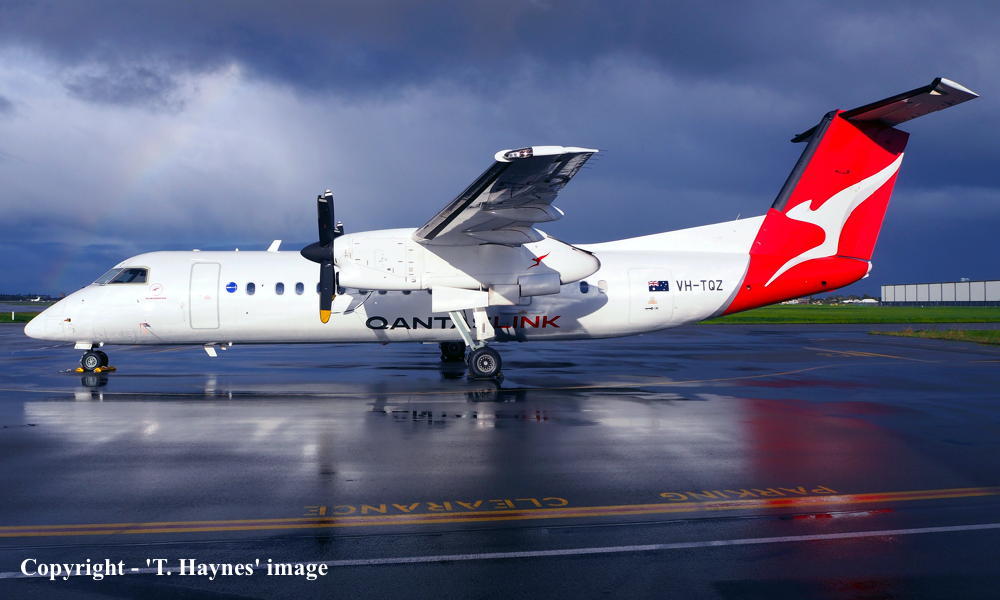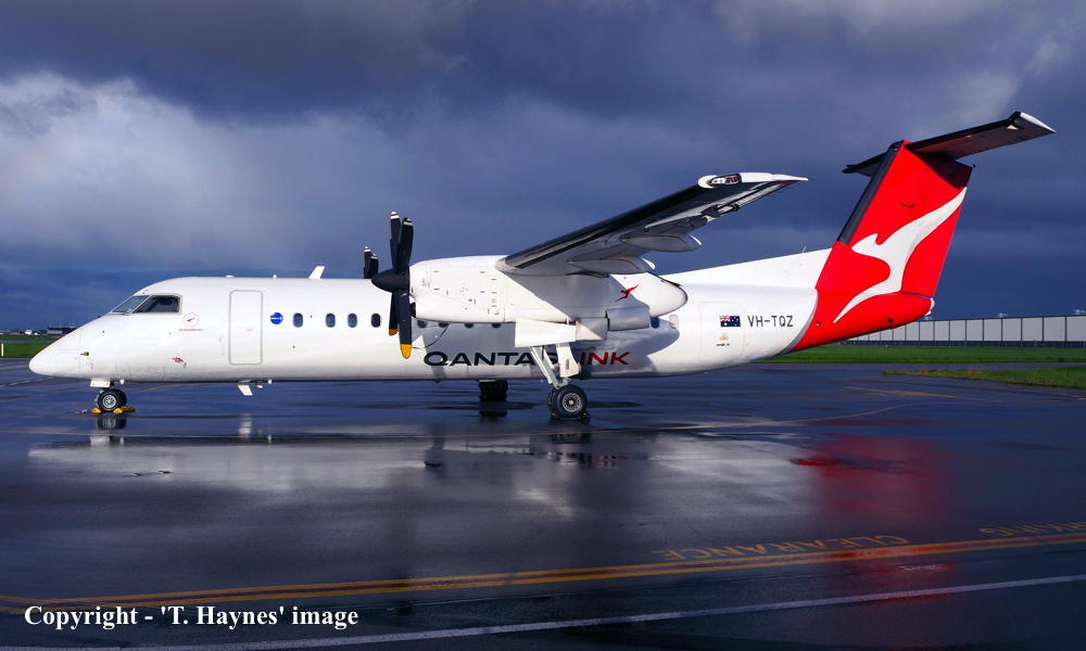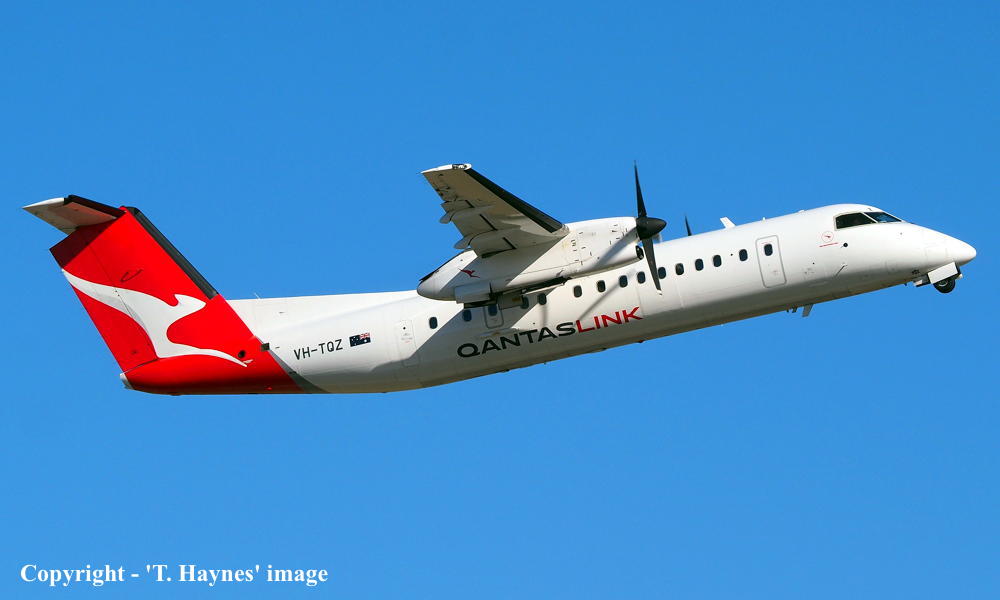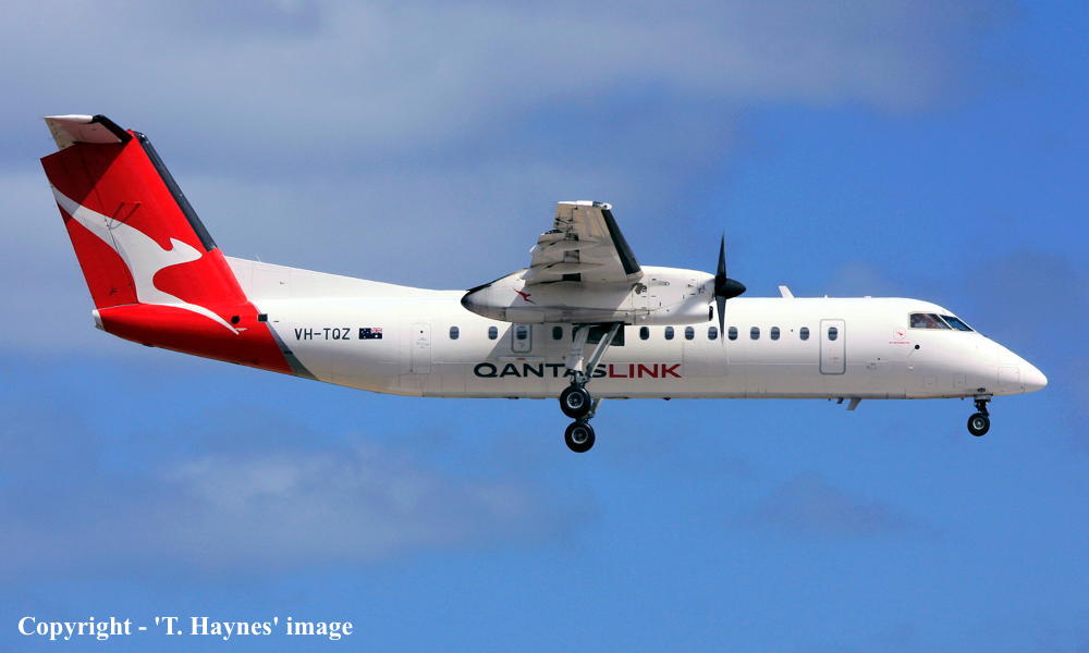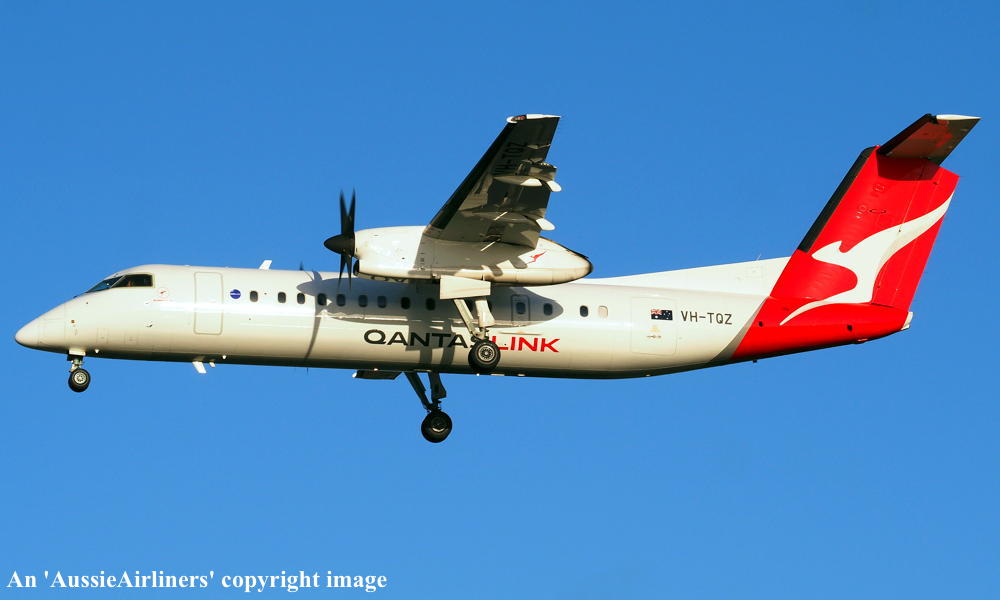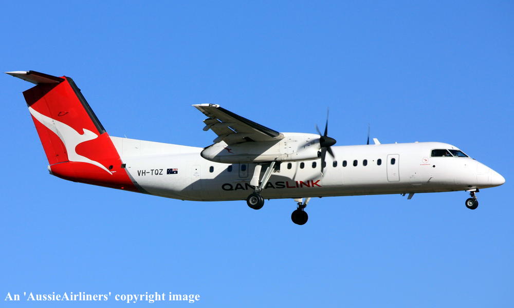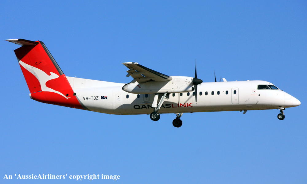 This aircraft was ordered new by Eastern Australia Airline - ? Entered onto the Canadian Aircraft Register as C-GDNK - September 29, 2000 Registered to Bombardier Inc, Downsview, Ontario, Canada Construction completed at the Downsview plant - September 29, 2000 First flown as 'C-GDNK' - October 2000 Powered by Pratt & Whitney Canada PWC123E turboprop engines It was configured to seat 50 passengers It was observed at Downsview in an all-white livery - October 21, 2000 Accepted by Eastern Australia Airlines at Downsview - November 05, 2000 It was observed at Colombo in the 'QantasLink' livery on the delivery flight to Australia - November 08, 2000 It arrived at Tamworth on completion of the delivery flight - November 18, 2000 Cancelled from the Canadian Aircraft Register - November 22, 2000 Entered onto the Australian Aircraft Register as VH-TQZ - November 29, 2000 Registered to Eastern Australia Airlines Pty Ltd Operated its first revenue service - ? Involved in a breakdown of separation at Tamworth Airport - February 07, 2008 To view the ATSB report on this inclident please click 'HERE' Registered to Qantas Airways Ltd, Sydney - January 18, 2011 Leased to Eastern Australia Airlines as the registered operator The aircraft was named 'Bundaberg' Current with QantasLink |