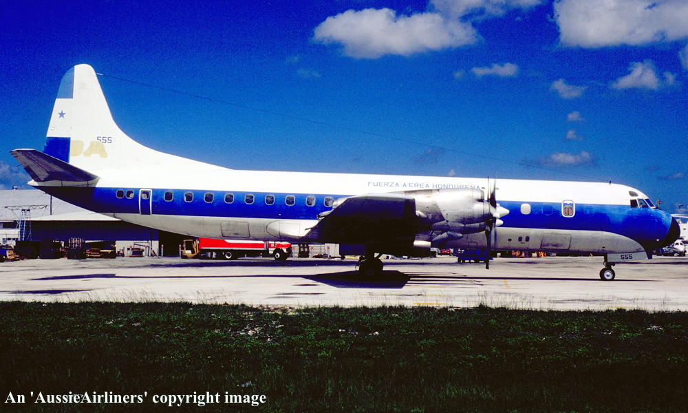 555. Fuerza Aerea Hondurean - in the standard livery at Miami International Airport, August 1989. (R. N. Smith Collection Copyright Image 1808-324.) |
